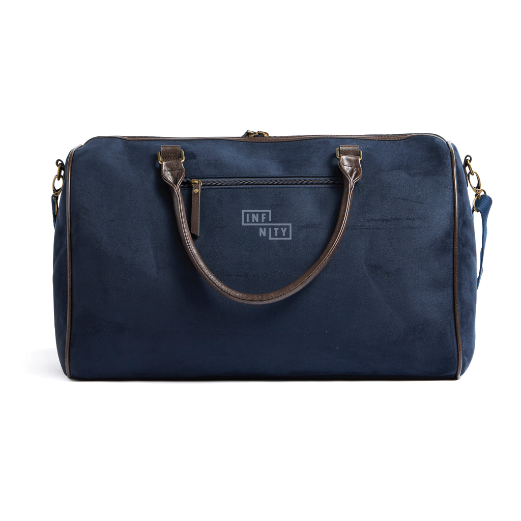 Geräumige Wochenendtasche, die sich perfekt für kürzere Ausflüge oder Exkursionen eignet. Die Tasche hat ein zeitloses und klassisches Design in Wildlederoptik und ist mit Messingdetails verziert. Sie können wählen oder variieren, wie Sie die Tasche tragen, entweder an den Griffen oder über die Schulter mit dem Schultergurt. Ein großartiger und leicht zu tragender Begleiter für die Tage, an denen Sie ständig unterwegs sind.
