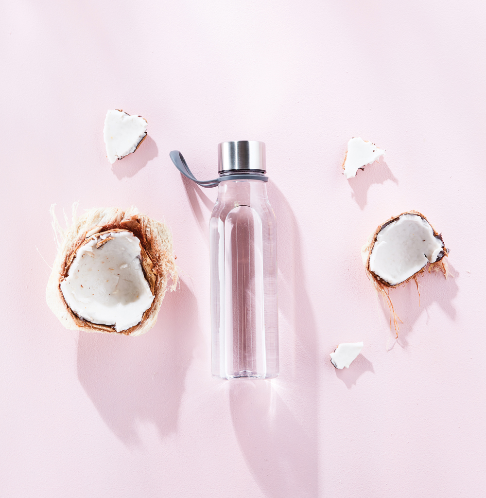 Wasserflasche aus BPA-freiem Triphenylmethan. Durch die Schlaufe am Verschluss lässt sich die Flasche leicht an Trainingsgeräte hängen, durch die schmale Form passt die Flasche in die meisten Becherhalter. Die Flasche lässt sich leicht reinigen und zudem leicht bedrucken. Nur Handwäsche. Inhalt: 600ml