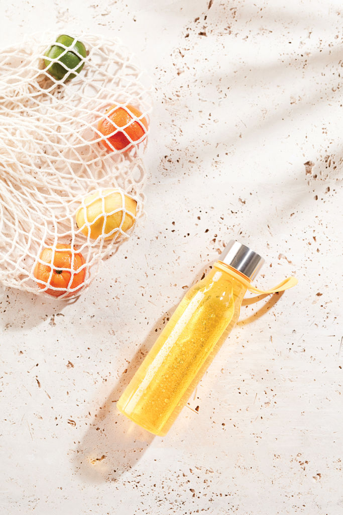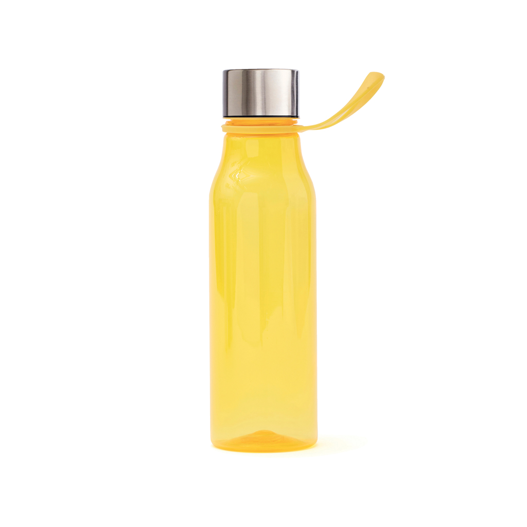 Wasserflasche aus BPA-freiem Triphenylmethan. Durch die Schlaufe am Verschluss lässt sich die Flasche leicht an Trainingsgeräte hängen, durch die schmale Form passt die Flasche in die meisten Becherhalter. Die Flasche lässt sich leicht reinigen und zudem leicht bedrucken. Nur Handwäsche. Inhalt: 600ml