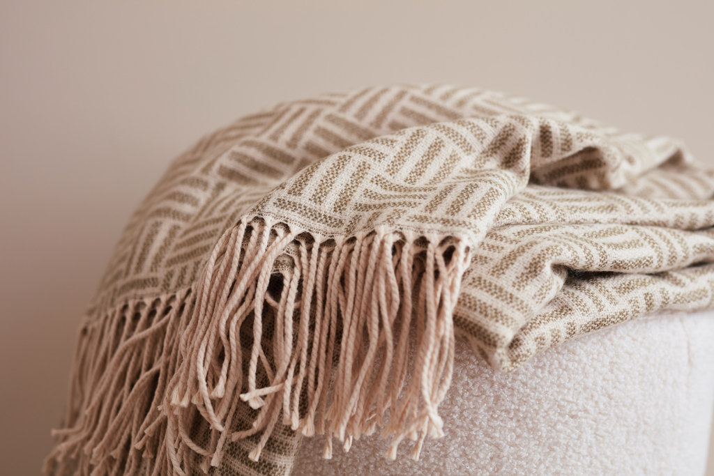Jacquard-gewebte Decke mit einem feinsinnigen geometrischen Muster, das der Decke ein stilvolles Design verleiht – ideal für Ihr Zuhause. Eine hübsche Decke für alle, die nicht nur Wert auf Bequemlichkeit legen, sondern ihrem Zuhause auch einen stilvollen Look verleihen wollen. Hergestellt aus 100% Acryl, einem künstlich hergestellten synthetischen Material mit Eigenschaften, die Wollfasern nahe komen. 220gr / m². 130 x 170cm.