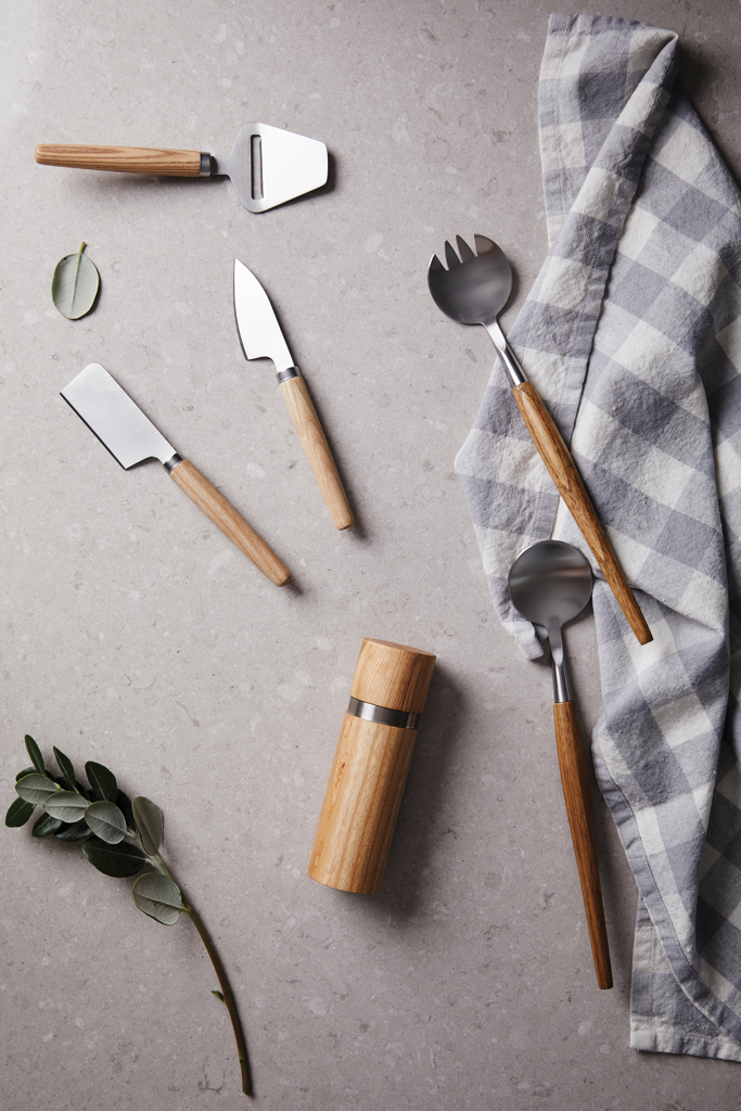 Das perfekte Geschenk für Käseliebhaber. Ein komplettes Set mit drei Käsemessern, mit denen Sie alle Arten von Hart- und Weichkäse schneiden, zerteilen, hobeln, aufstreichen und servieren können. Dieses stilvolle Käsemesserset mit Griffen aus Eschenholz und Klingen aus rostfreiem Stahl verleiht Ihrer Käseplatte nach dem Essen eine besondere Note.
