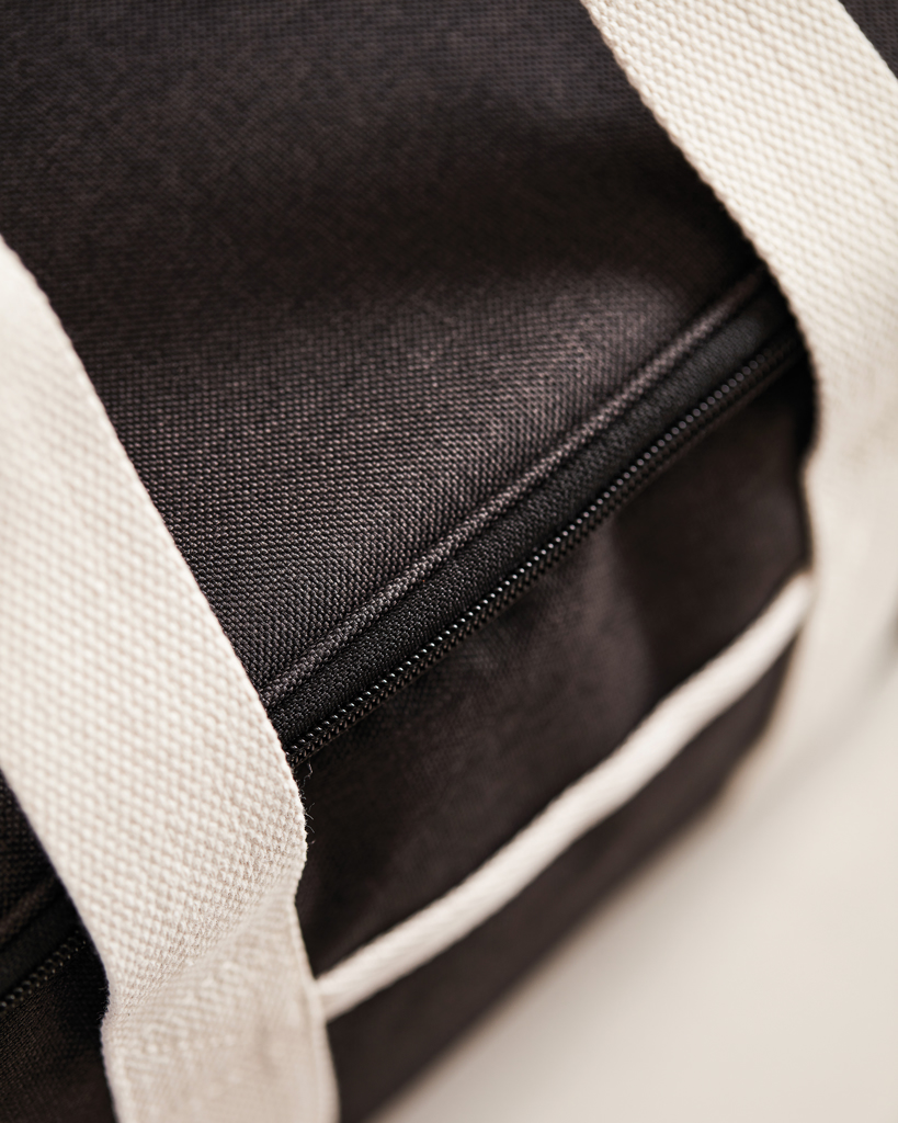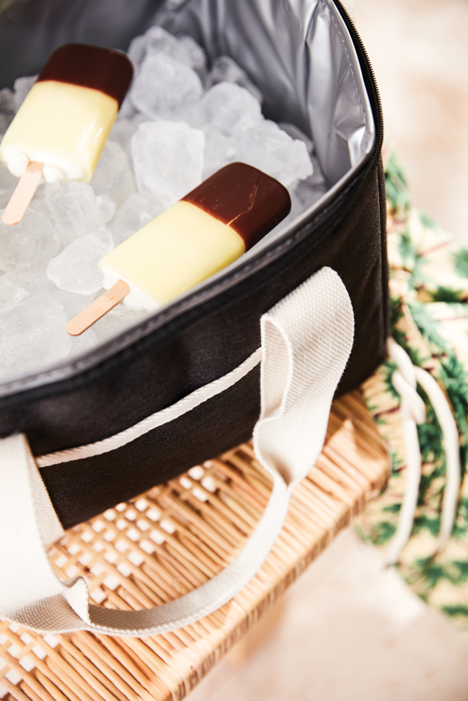Der ultimative Kühlkorb, Ton in Ton meliert und mit Details aus Kunstleder und Baumwolle. An der Außenseite der Kühltasche befindet sich auch ein kleines Fach, sodass Sie ebenso Platz für andere Dinge haben. Die dicke PEVA-Polsterung bewirkt, dass die Kälte lange erhalten bleibt und die Tasche nach Gebrauch außerdem leicht zu reinigen und zu trocknen ist. Dank dem verstellbaren Schultergurt und dem doppelten Handgriff, haben Sie mehrere Möglichkeiten, den Kühlkorb zu tragen.