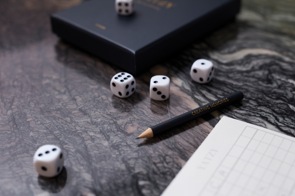 Straße, Viererpasch oder alle fünf gleich? Hier kommt das beliebte 5-Würfel-Spiel, aufbewahrt in einer edlen Schachtel bedruckt mit Goldtext. Die edle Geschenkschachtel macht dieses Spiel zu einem tollen Geschenk und sieht außerdem gut aus, wenn es auf dem Tisch liegt. Der Name dieses Artikels wird sich bald ändern, der Artikel an sich und die Funktion bleiben aber zu 100% identisch.