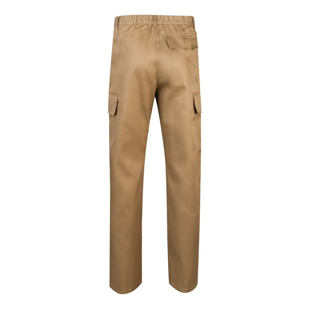 Hose aus Twill mit mehreren Taschen (190 g / m²), aus Baumwolle (20%) und Polyester (80%). Mit elastischem Bund und fünf Taschen (2 Eingrifftaschen, 2 seitliche Zwickeltaschen und 2 Gesäßzwickeltaschen). Größe: 36, 38, 40, 42, 44, 46, 48, 50, 52, 54, 56, 58, 60