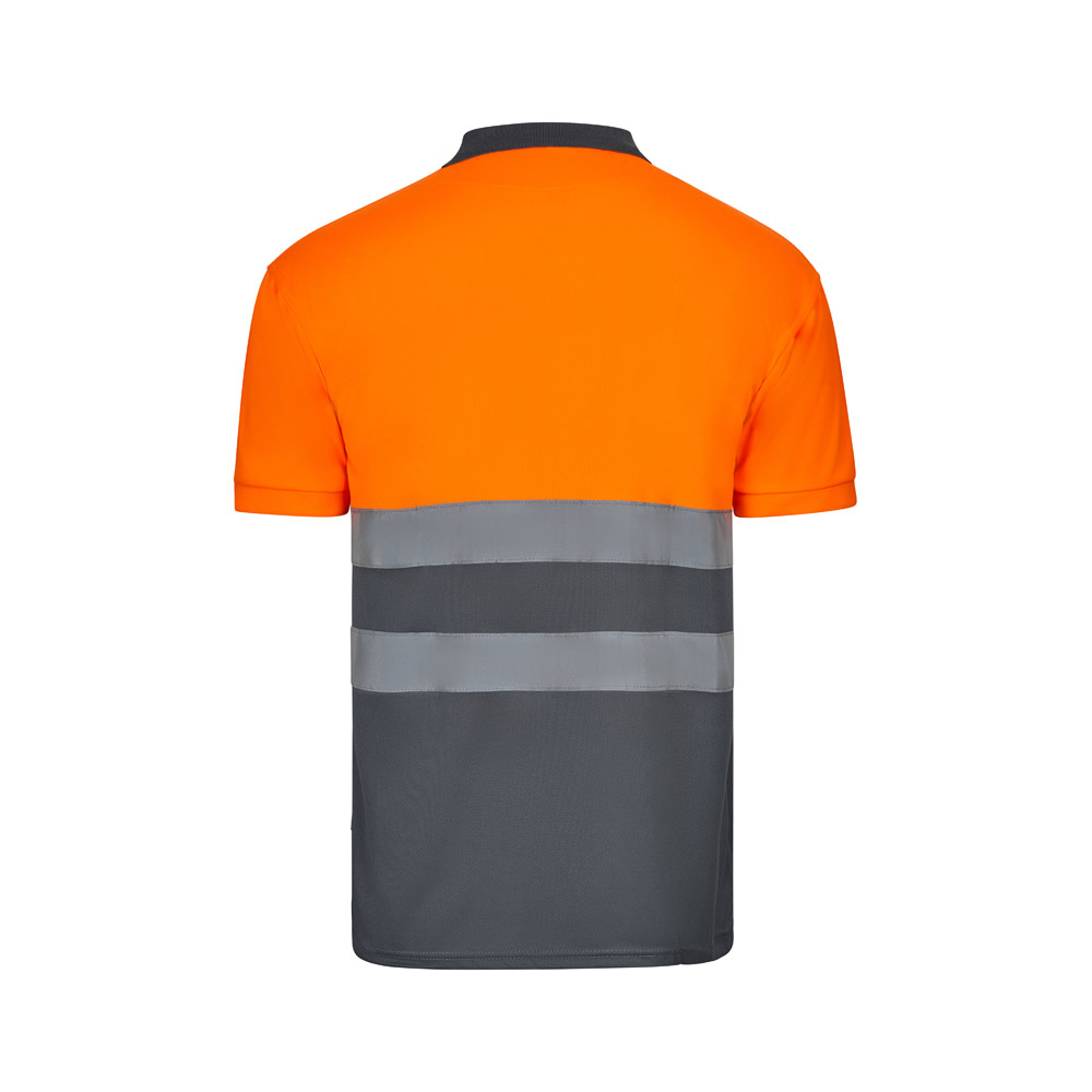 Zweifarbiges Poloshirt im Bird-Eye-Design (160g / m²) mit kurzen Ärmeln, aus Polyester (100%). Knöpfe und Kragen in Kontrastfarbe. Gerippter Kragen. Reflektierende Streifen auf dem Oberkörper. Inklusive einer Brusttasche. Produkt gemäß EU-Verordnung 2016/425, zertifiziert nach EN20471 und Klasse Nº 1. Größe: 4XL, 5XL