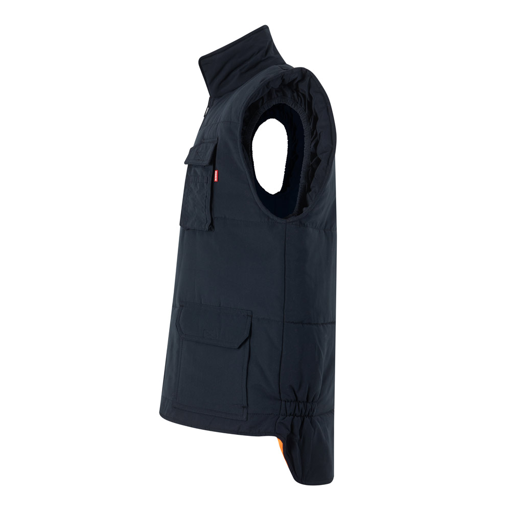 Steppweste (220g / m²), wendbar und mit mehreren Taschen, aus Polyester (100%), mit Reißverschluss und Wendezipper. Der wendbare Teil hat reflektierende Streifen auf dem Rumpf und winddichte Streifen am Armloch. Die Weste hat einen seitlichen Bund und 4 Taschen (2 Brusttaschen und 2 untere Taschen). Produkt gemäß EU-Verordnung 2016/425, zertifiziert nach EN20471 und Klasse Nº 1. Größe: S, M, L, XL, 2XL, 3XL