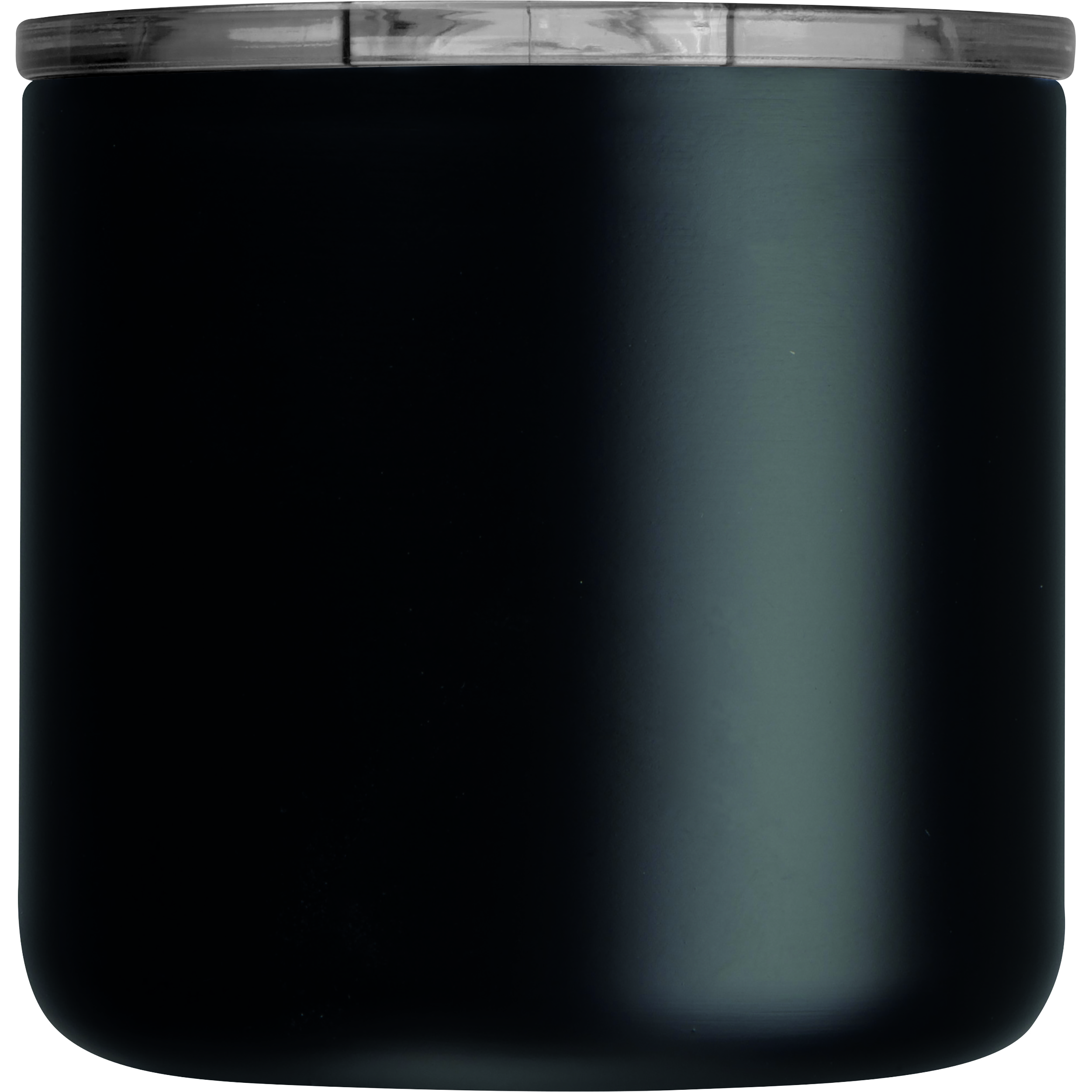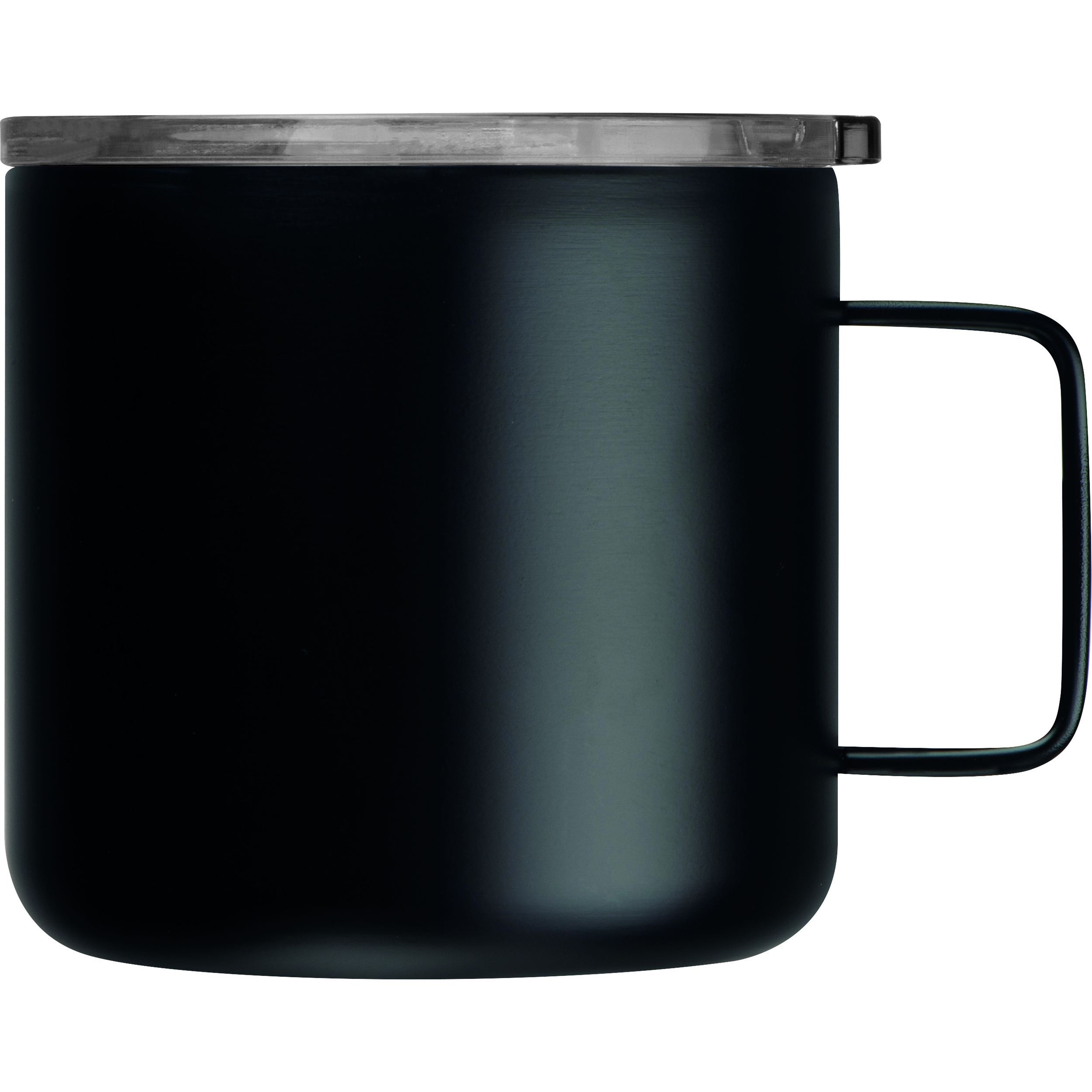Doppelwandige Vakuum Edelstahltasse mit transparentem Deckel mit Trinkschiebeleiste. Füllvermögen 300ml. Ihre Werbung wird auf den Becher graviert.