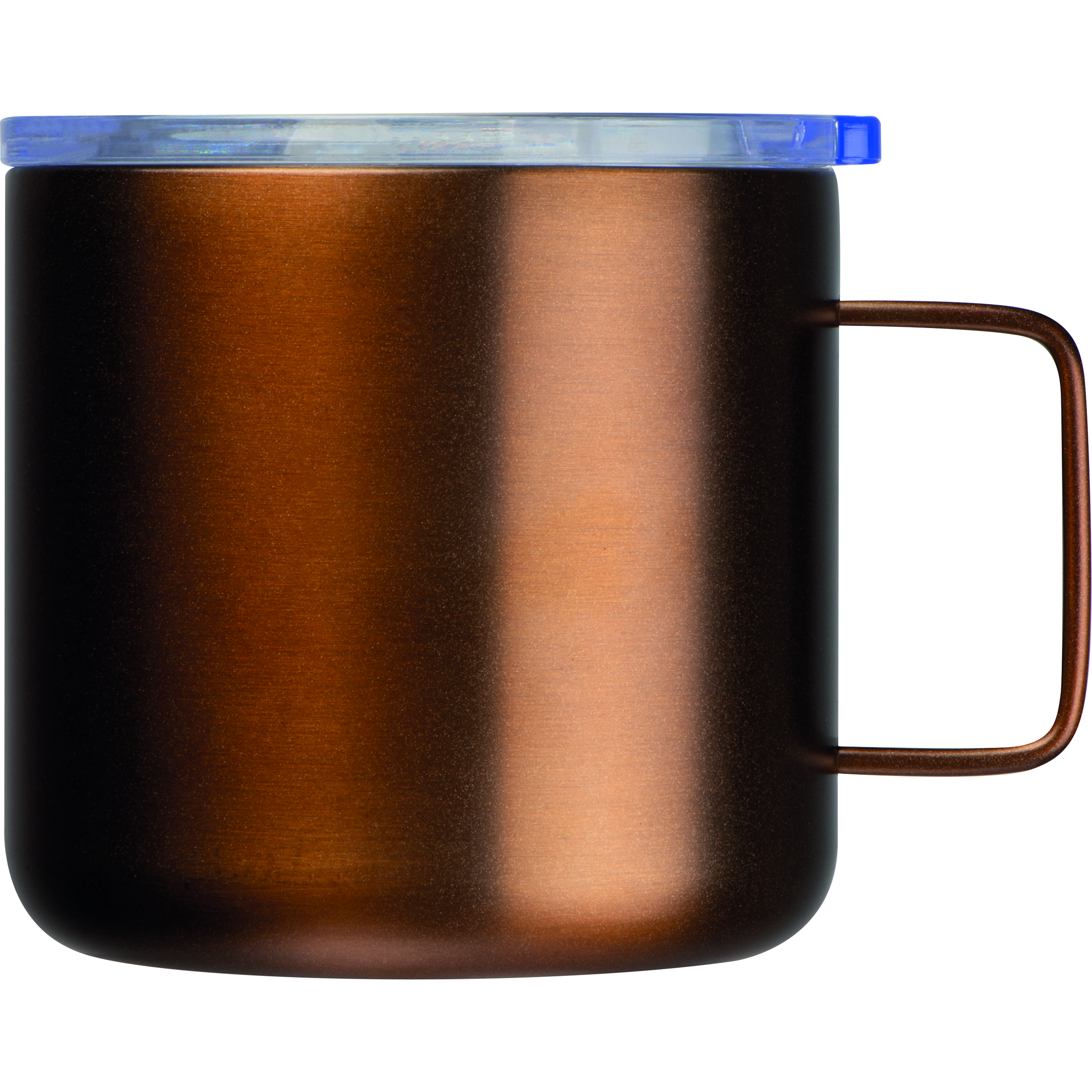 Doppelwandige Vakuum Edelstahltasse mit transparentem Deckel mit Trinkschiebeleiste. Füllvermögen 300ml. Ihre Werbung wird auf den Becher graviert.