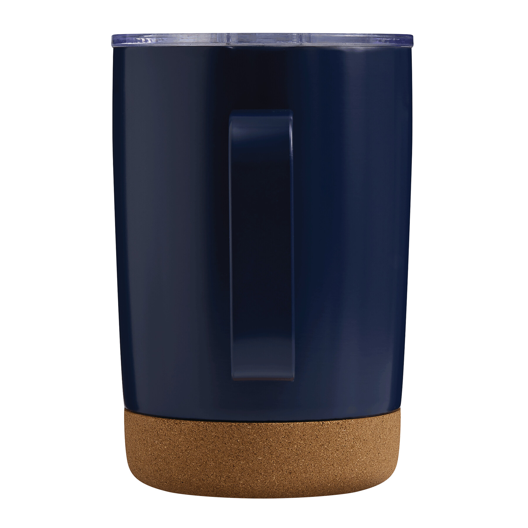 Vakuum-Isolierbecher STEELJOURNEY, doppelwandig: innen und außen aus Edelstahl, mit Korkboden und praktischem Griff, transparenter Kunststoff-Deckel mit Silikon-Dichtring und integrierter Trinköffnung zum Aufschieben, Füllmenge ca. 350 ml, hält ca. 4 Stunden warm und bis zu 8 Stunden kalt, in Box