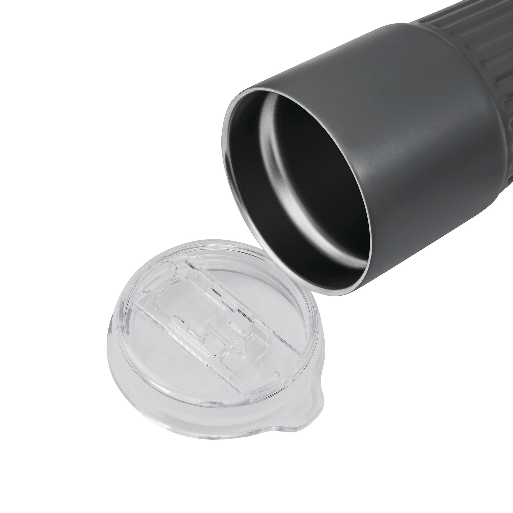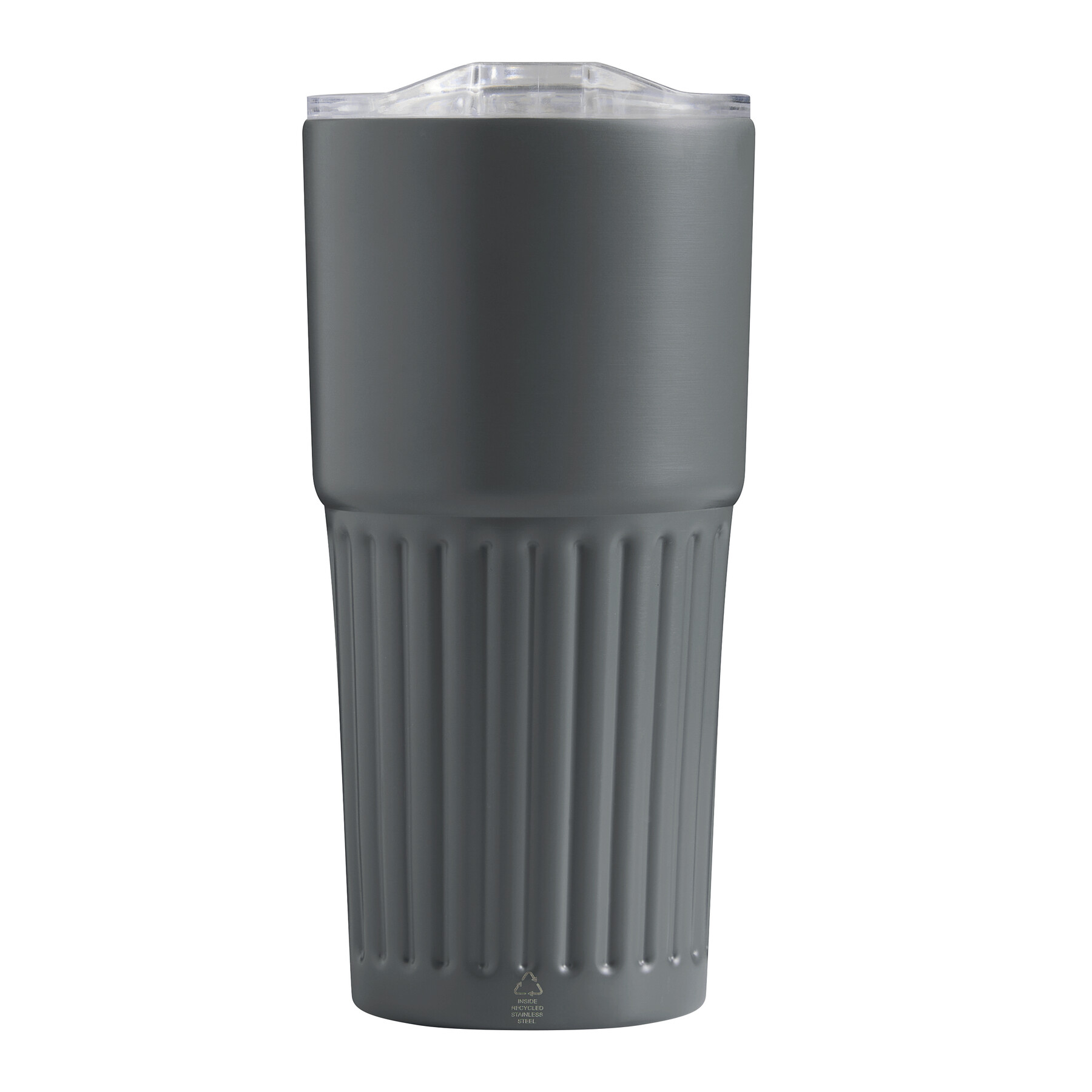 Vakuum-Isolierbecher WAVE LINE, doppelwandig: innen aus recyceltem Edelstahl und außen aus Edelstahl, transparenter Kunststoff-Deckel mit Silikon-Dichtring und integrierter Trinköffnung zum Aufschieben, beschichteter Boden für gute Oberflächenhaftung, Füllmenge ca. 600 ml, hält ca. 4 Stunden warm und bis zu 8 Stunden kalt, in Box