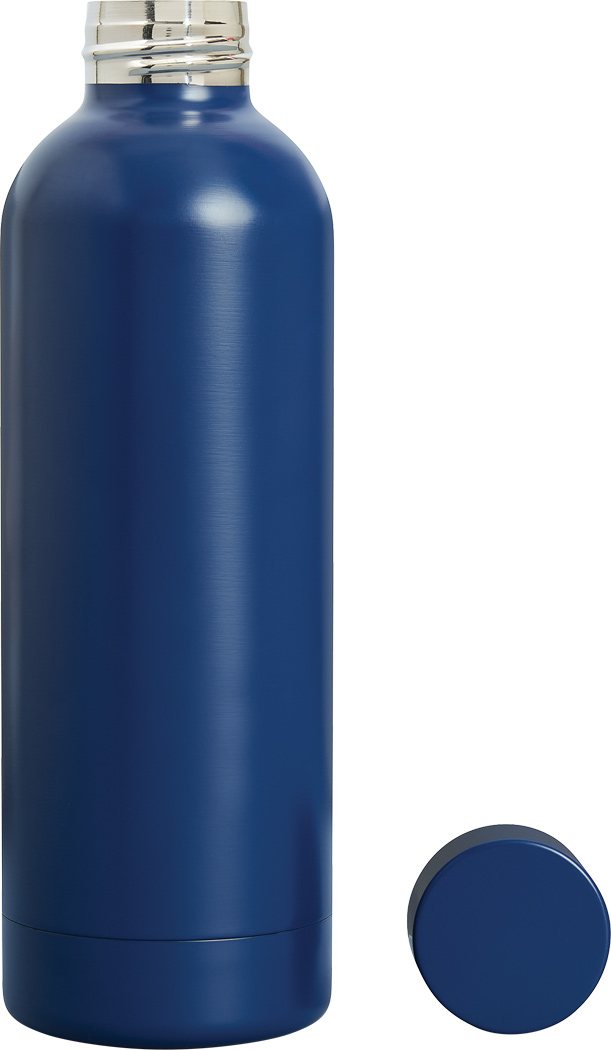 Vakuum-Isolierflasche GET WARM, doppelwandig: innen und außen aus Edelstahl, farbig passender Kunststoff-Deckel mit sicherem Schraubverschluss und Silikon-Dichtring, Füllmenge ca. 500 ml, hält ca. 8 Stunden warm und bis zu 12 Stunden kalt, in Box