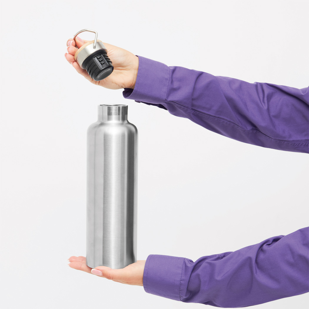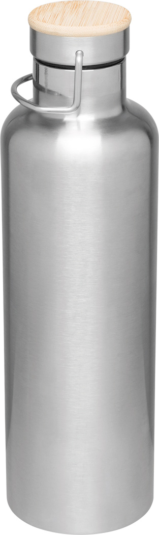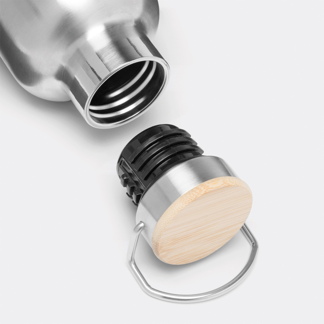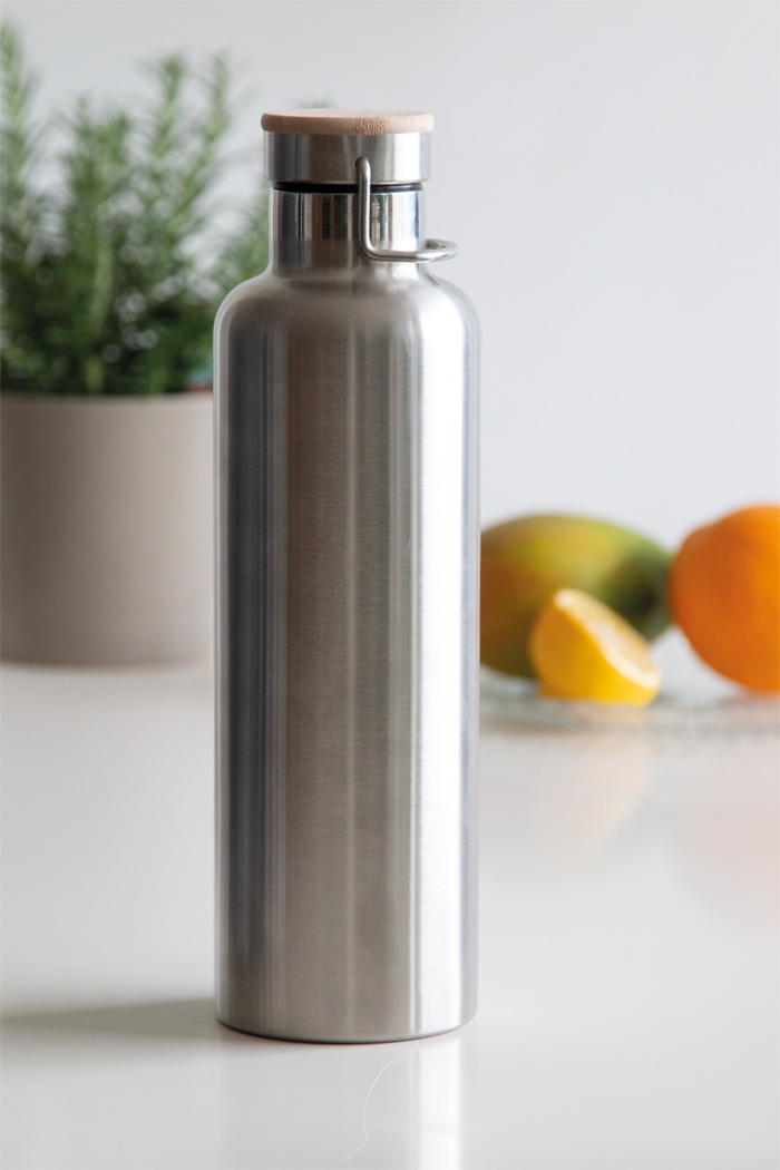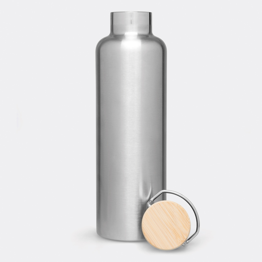 Vakuum-Isolierflasche JUMBO MILITARY, doppelwandig: außen und innen aus Edelstahl, Deckel mit Bambus, sicherer Schraubverschluss, Füllmenge ca. 1.000 ml, hält ca. 8 Stunden warm und bis zu 12 Stunden kalt