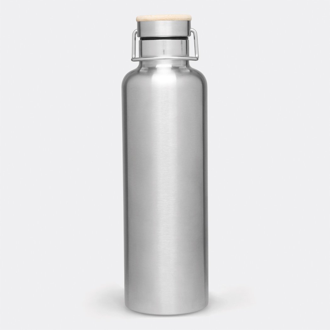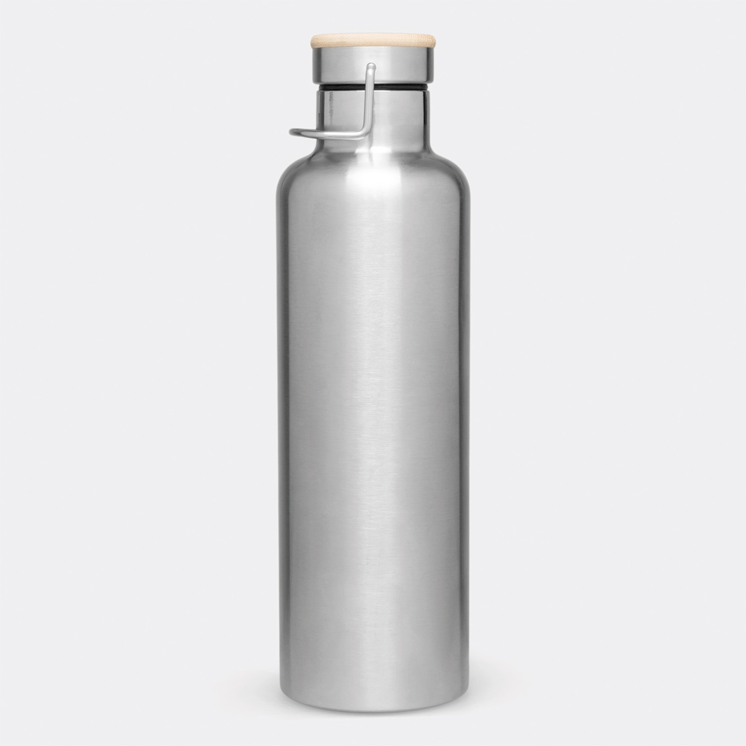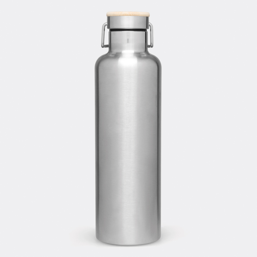 Vakuum-Isolierflasche JUMBO MILITARY, doppelwandig: außen und innen aus Edelstahl, Deckel mit Bambus, sicherer Schraubverschluss, Füllmenge ca. 1.000 ml, hält ca. 8 Stunden warm und bis zu 12 Stunden kalt