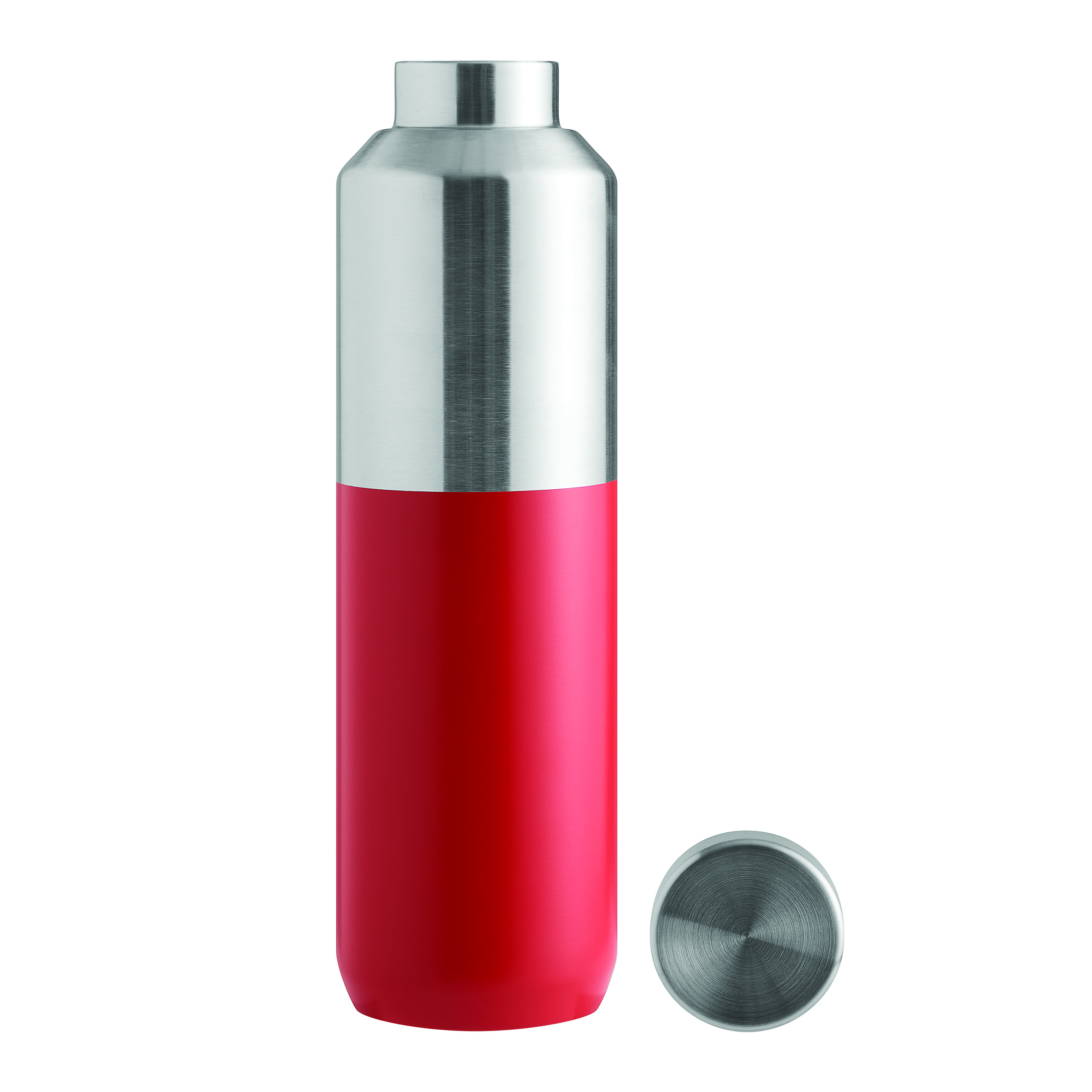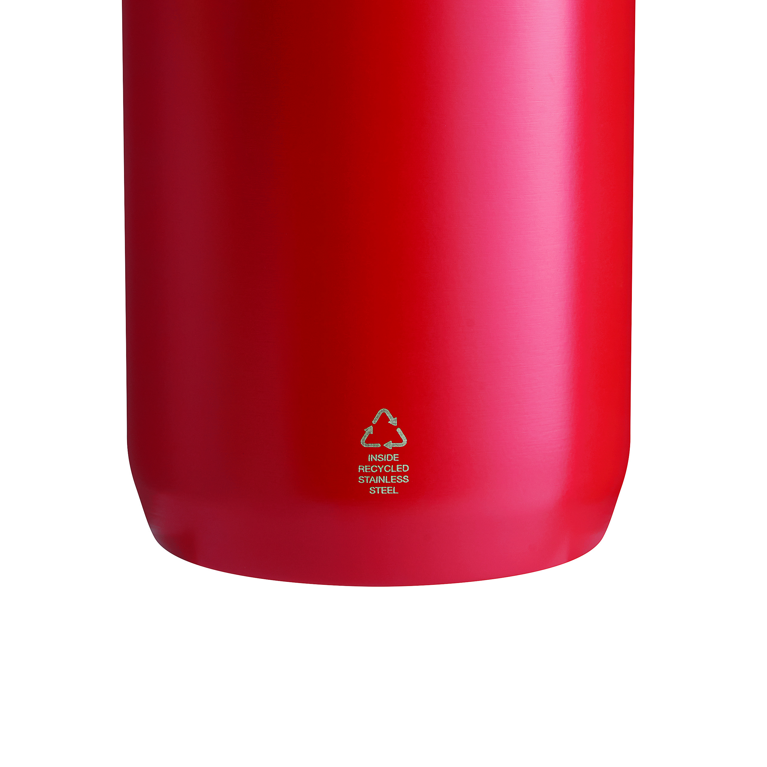 Vakuum-Isolierflasche STEECO, doppelwandig: innen aus recyceltem Edelstahl und außen aus Edelstahl, Deckel mit sicherem Schraubverschluss und Silikon-Dichtring, beschichteter Boden für gute Oberflächenhaftung, Füllmenge ca. 600 ml, hält ca. 8 Stunden warm und bis zu 12 Stunden kalt, in Box