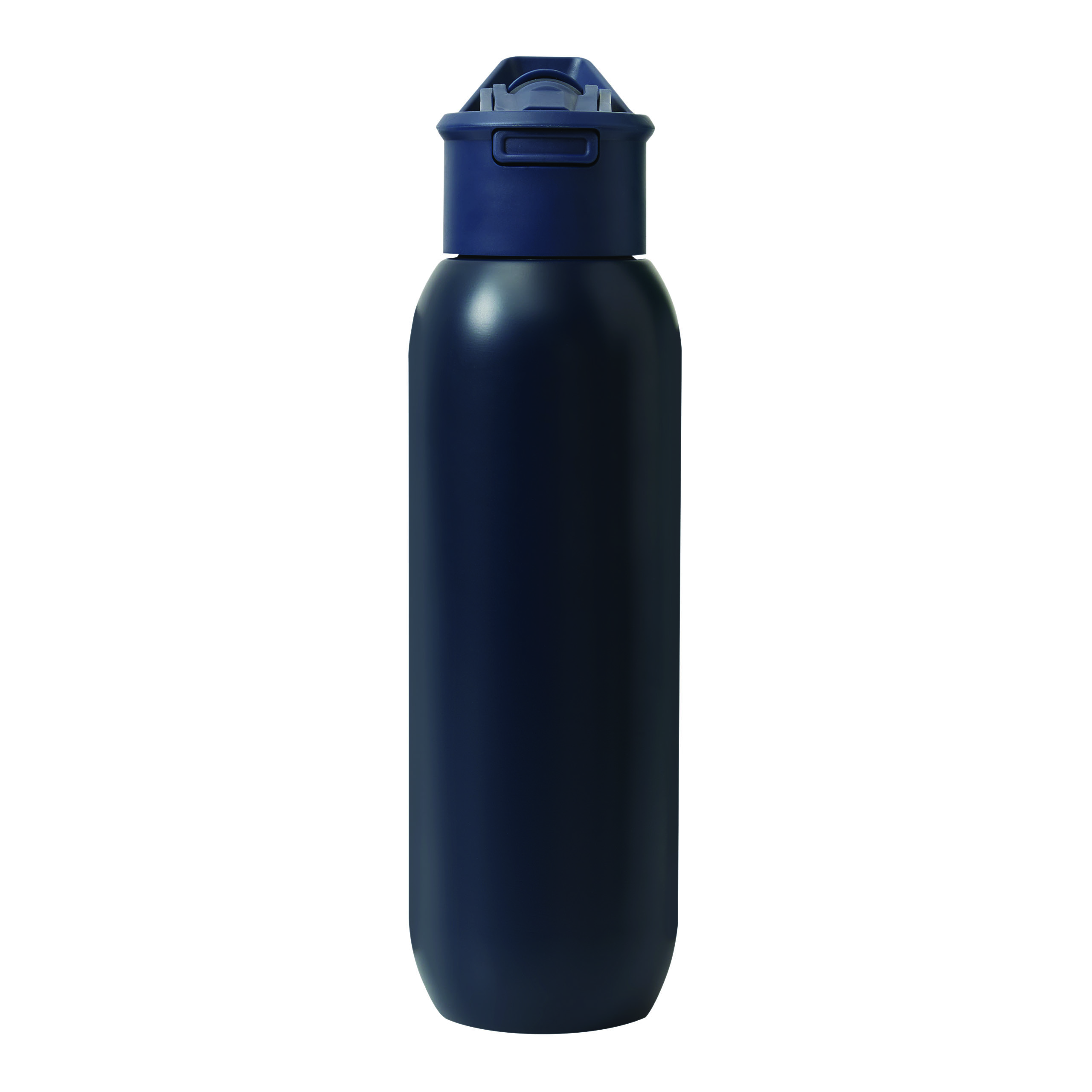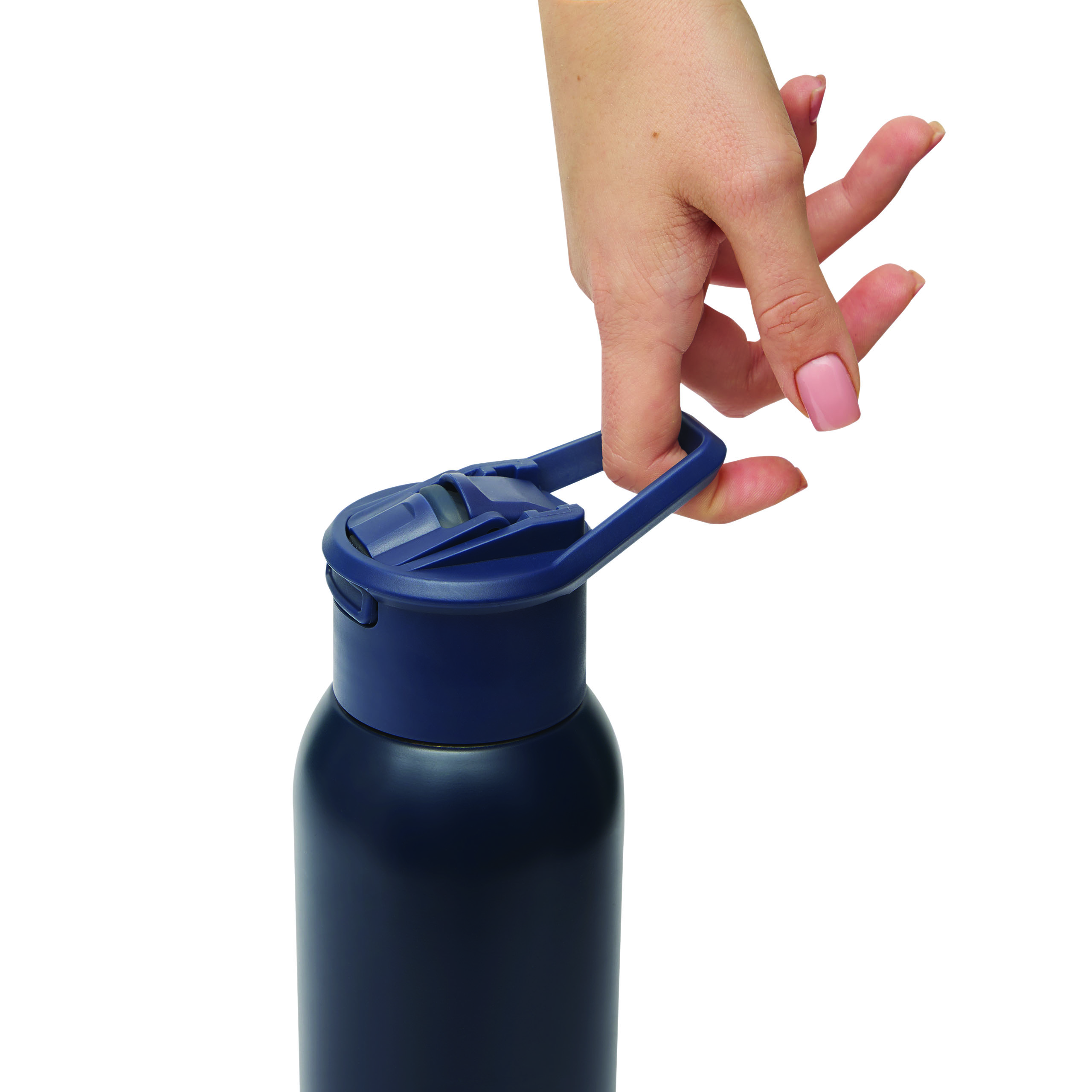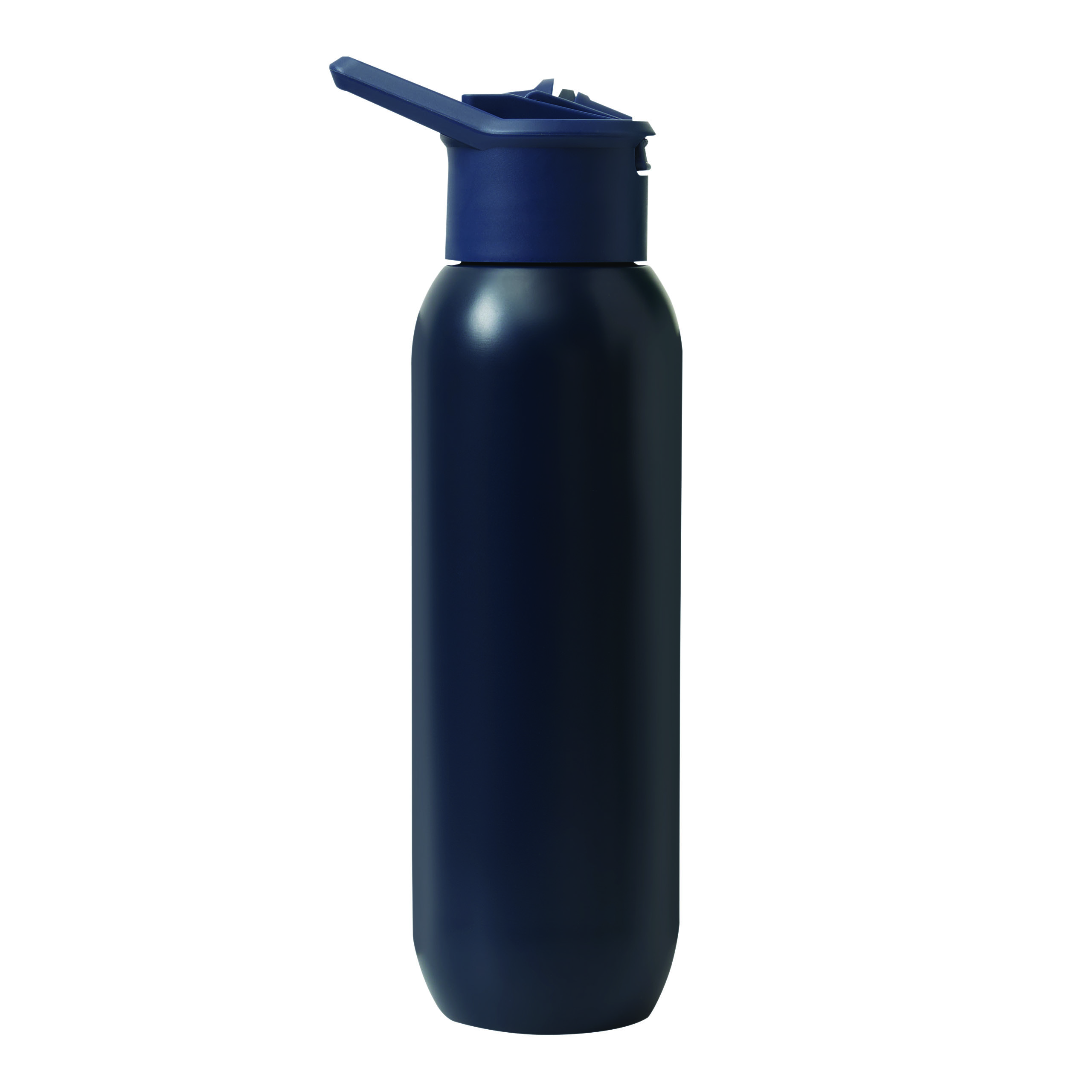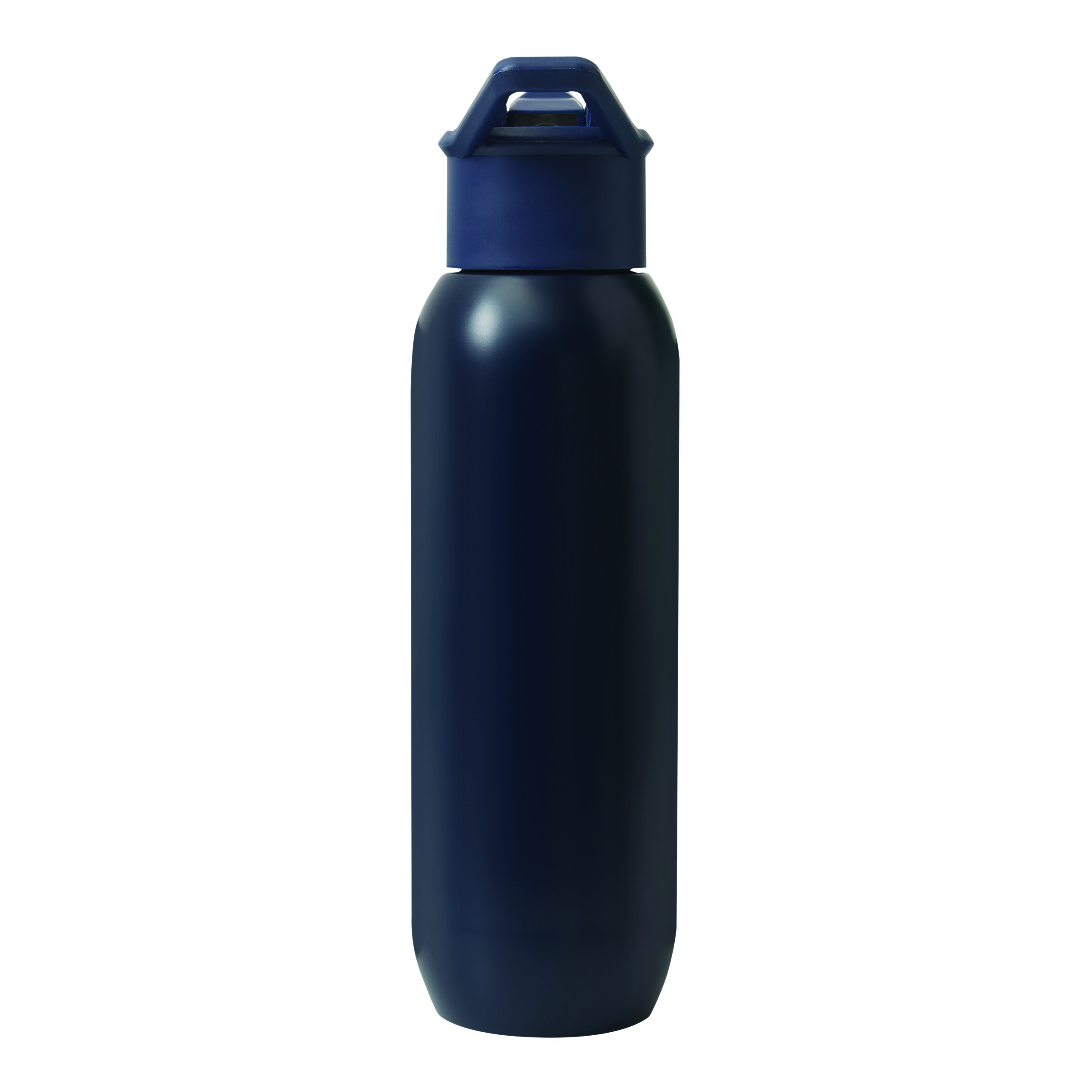 Vakuum-Isolierflasche TREKSTEEL, doppelwandig: innen und außen aus Edelstahl, farblich passender Kunststoff-Deckel mit sicherem Schraubverschluss, Silikon-Dichtring und Tragegriff, einhändig zu öffnender Flip-Top-Deckel, integrierter Edelstahl-Trinkhalm mit weichem Silikonmundstück, Füllmenge ca. 600 ml, hält ca. 8 Stunden warm und bis zu 12 Stunden kalt, in Box