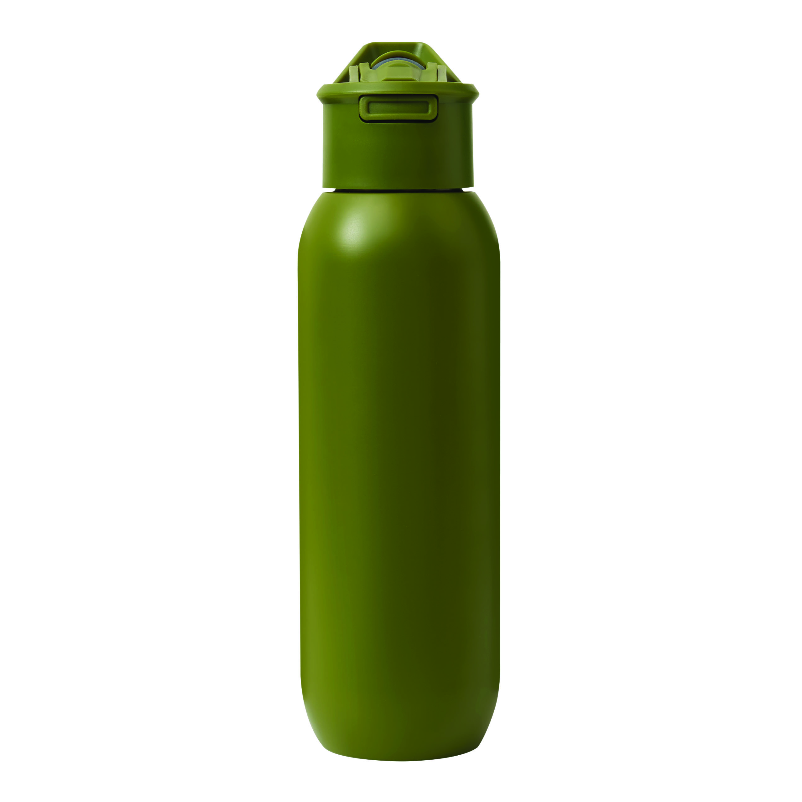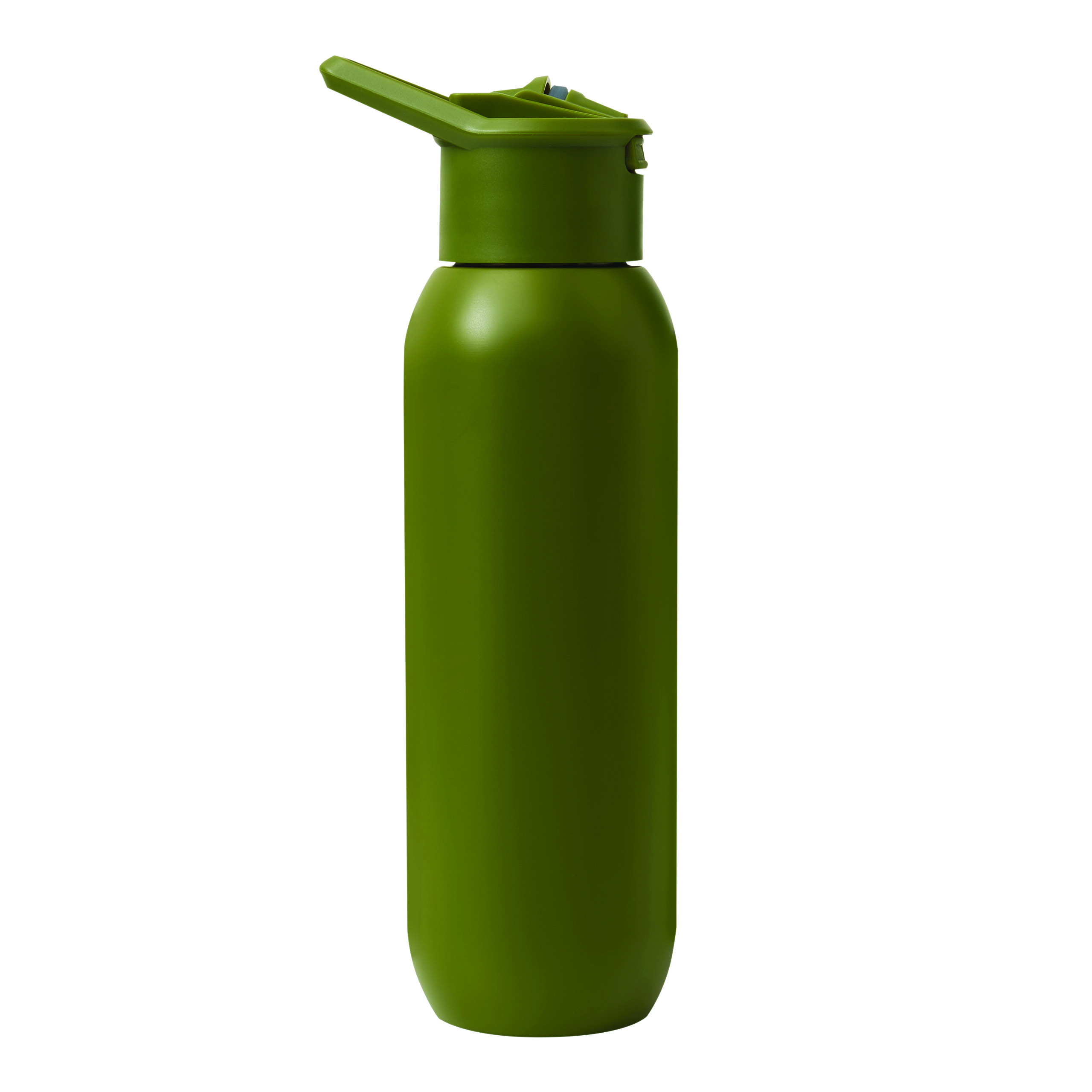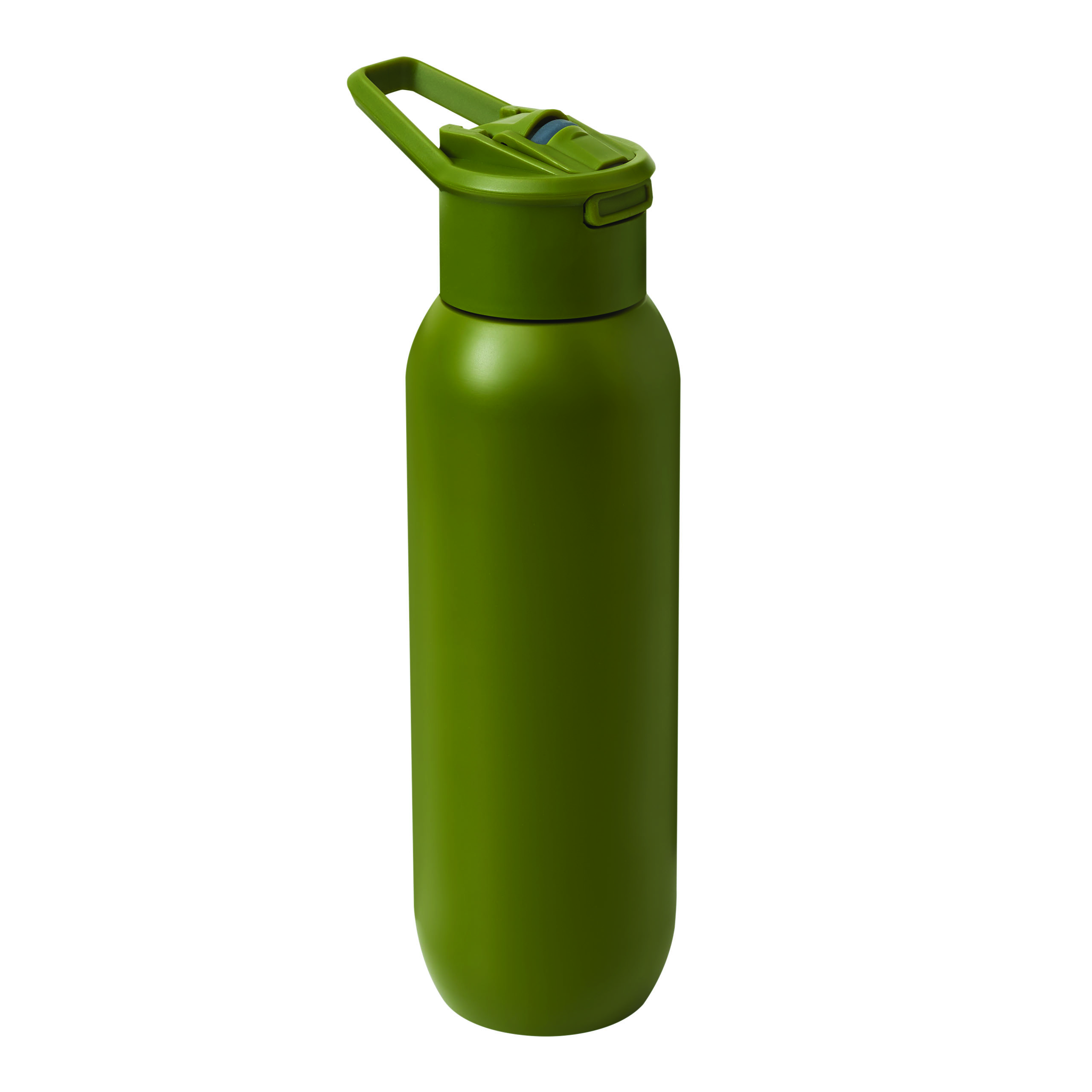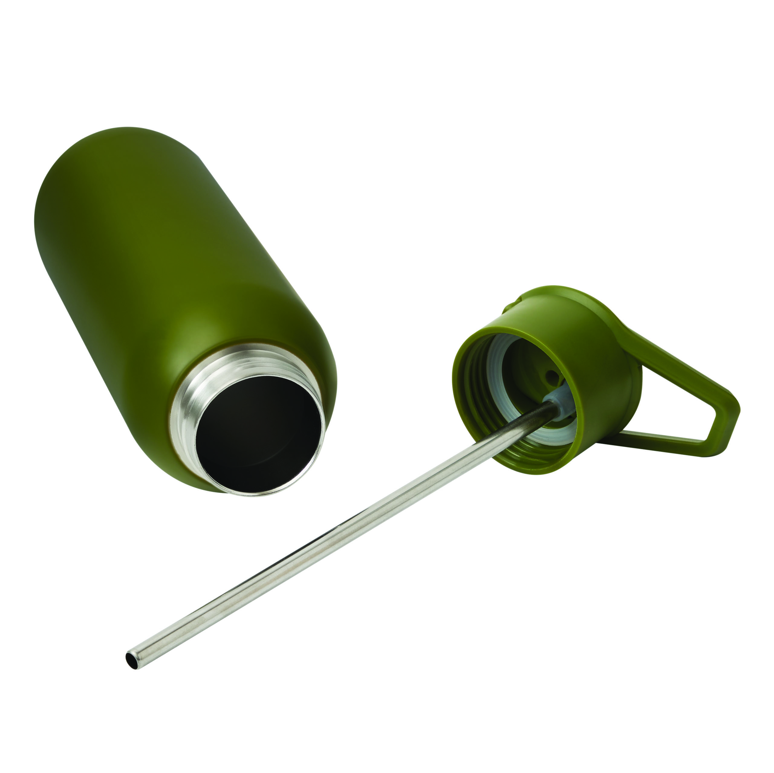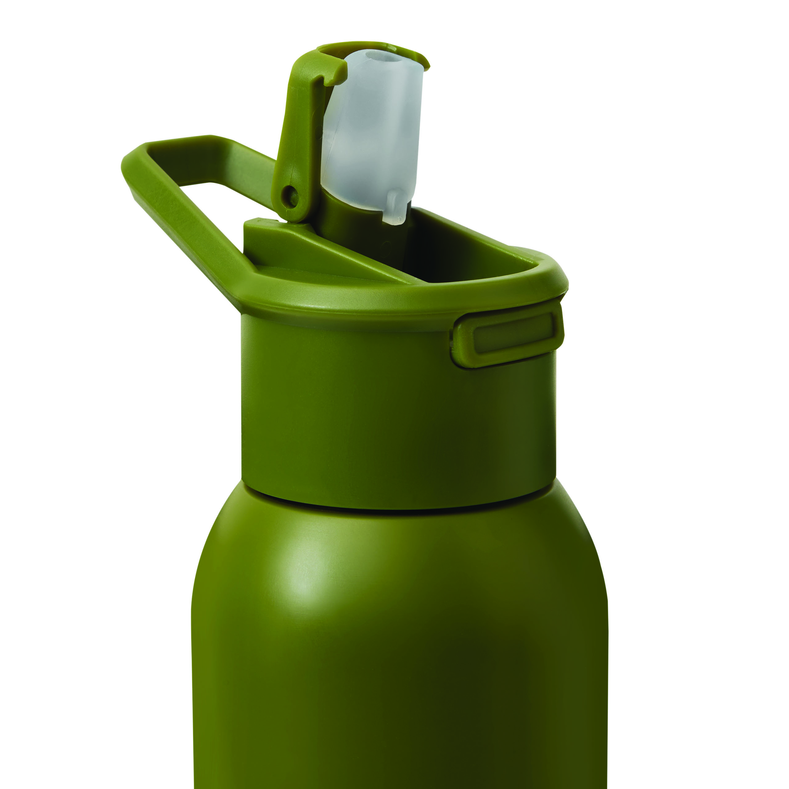 Vakuum-Isolierflasche TREKSTEEL, doppelwandig: innen und außen aus Edelstahl, farblich passender Kunststoff-Deckel mit sicherem Schraubverschluss, Silikon-Dichtring und Tragegriff, einhändig zu öffnender Flip-Top-Deckel, integrierter Edelstahl-Trinkhalm mit weichem Silikonmundstück, Füllmenge ca. 600 ml, hält ca. 8 Stunden warm und bis zu 12 Stunden kalt, in Box