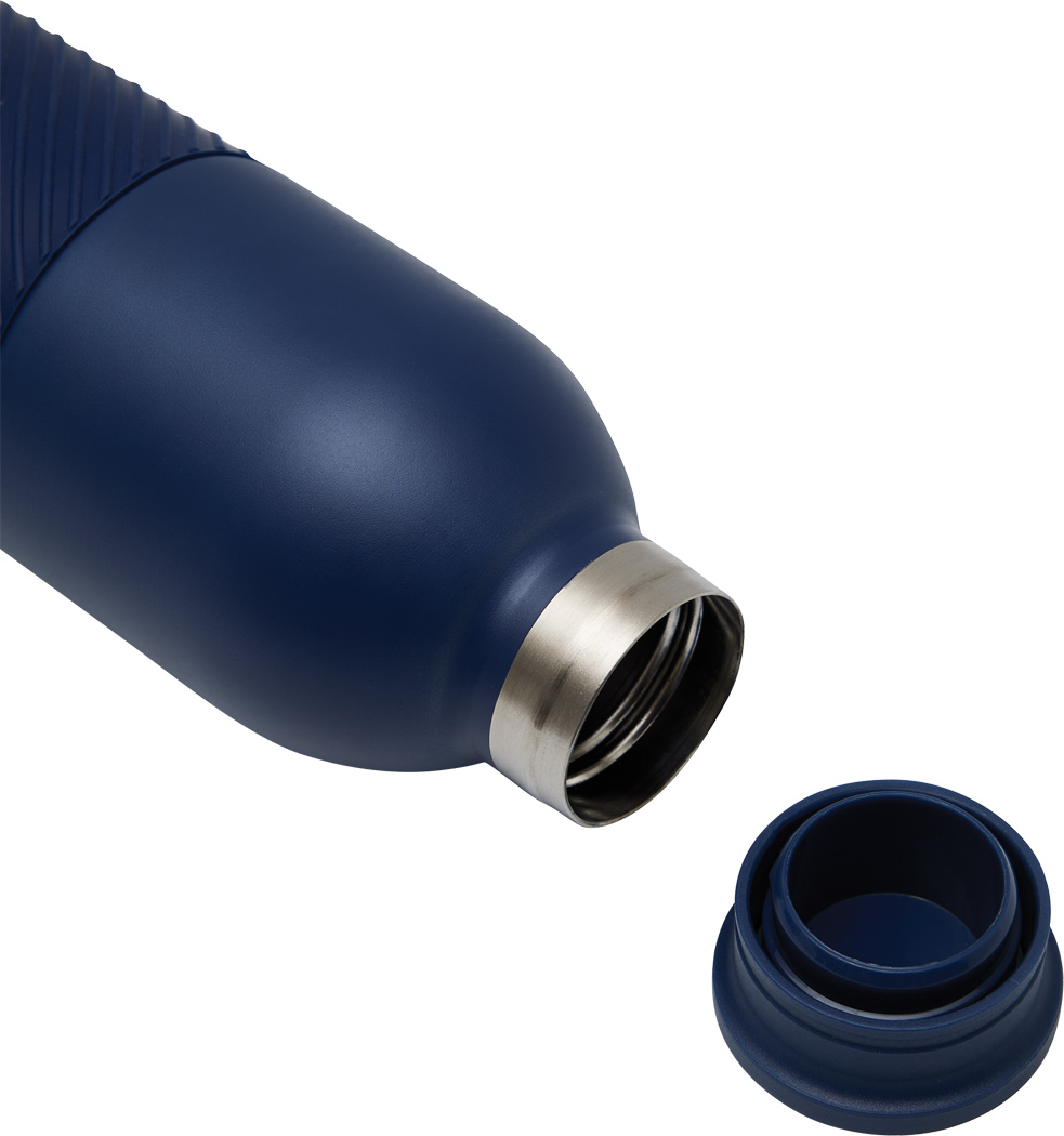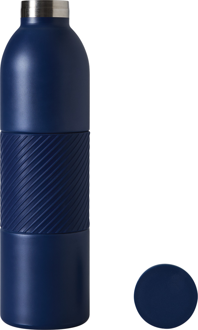 Vakuum-Isolierflasche VACUGRIP, doppelwandig: innen und außen aus Edelstahl, farbig passender Kunststoff-Deckel mit sicherem Schraubverschluss und Silikon-Dichtring, Silikon-Manschette für optimale Griffigkeit, Füllmenge ca. 600 ml, hält ca. 8 Stunden warm und bis zu 12 Stunden kalt, in Box