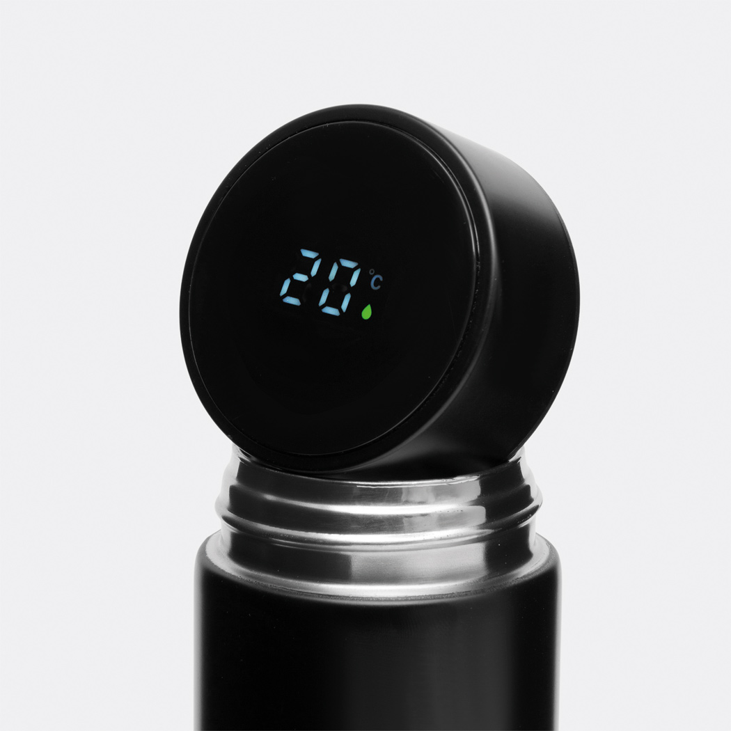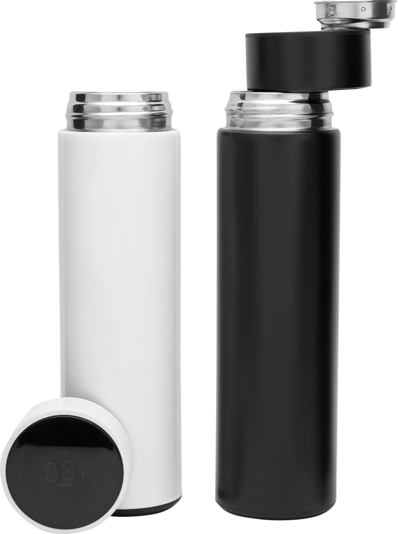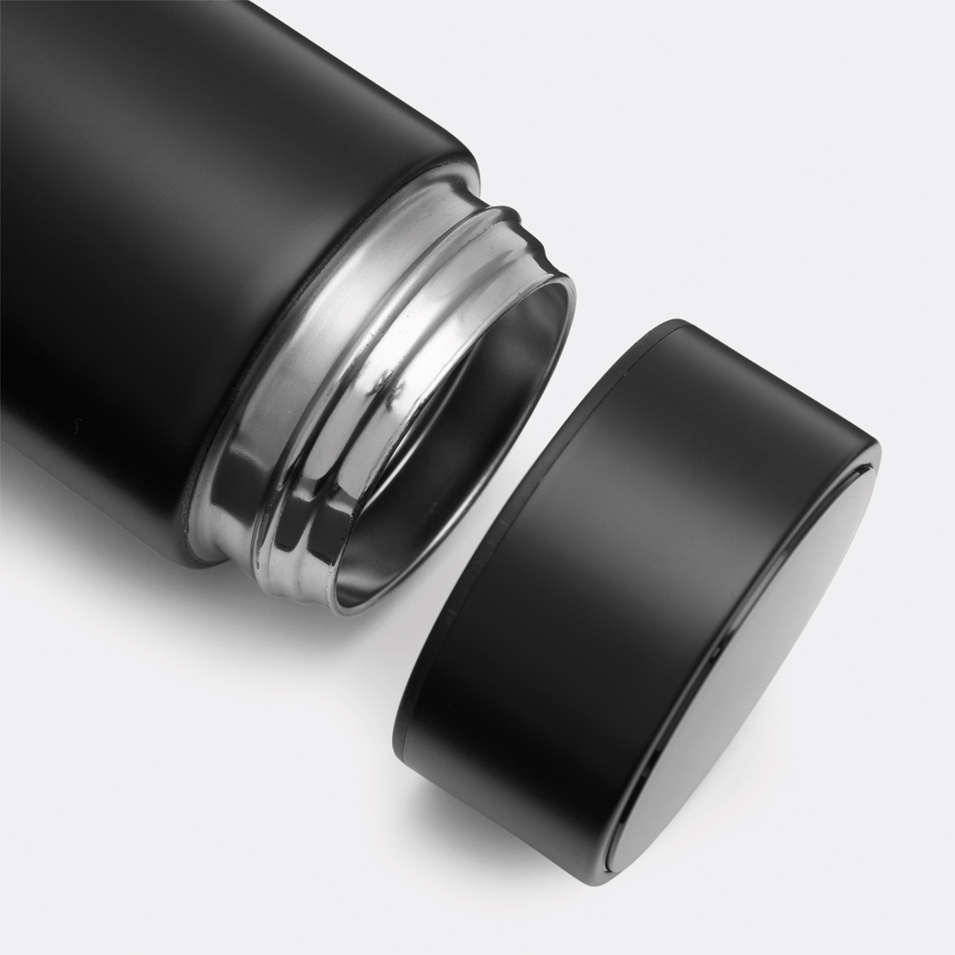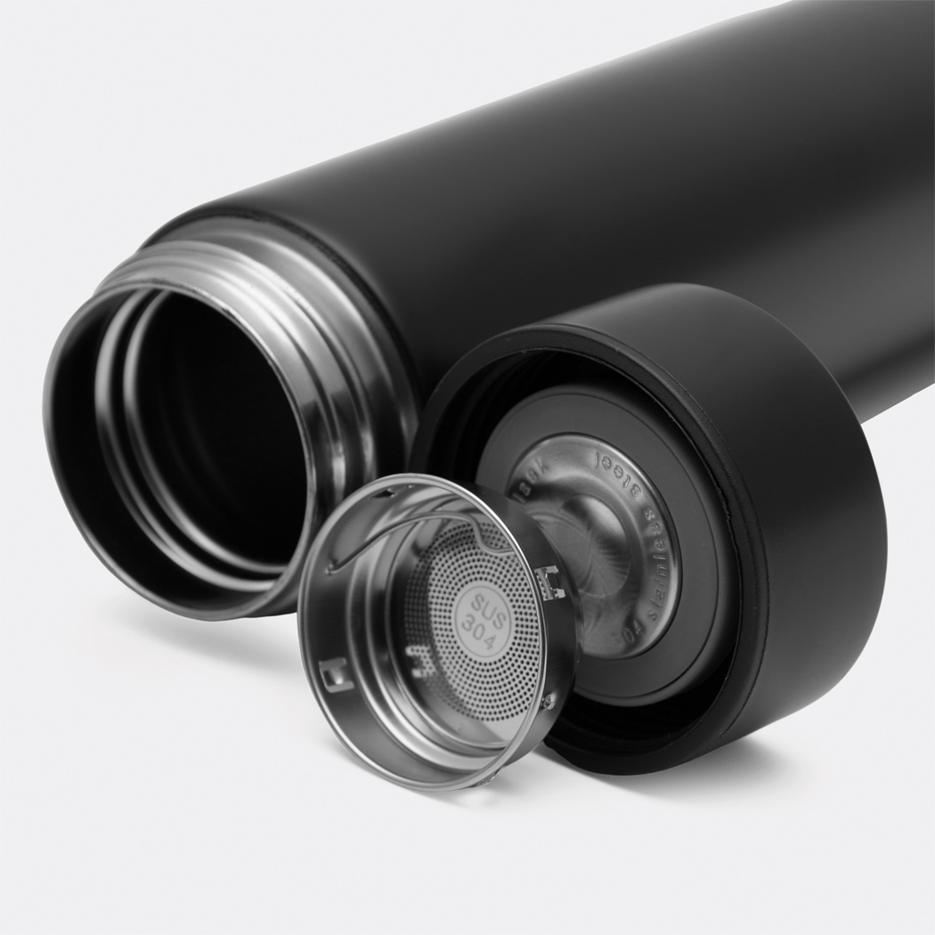 Vakuum-Isolierkanne EXQUISITE, doppelwandig: innen und außen aus Edelstahl, farbig passender Deckel mit sicherem Schraubverschluss, Silikon-Dichtring und integriertem digitalen Thermometer, mit herausnehmbarem Teesieb, Füllmenge ca. 500 ml, hält ca. 6 Stunden warm und bis zu 12 Stunden kalt, in Box