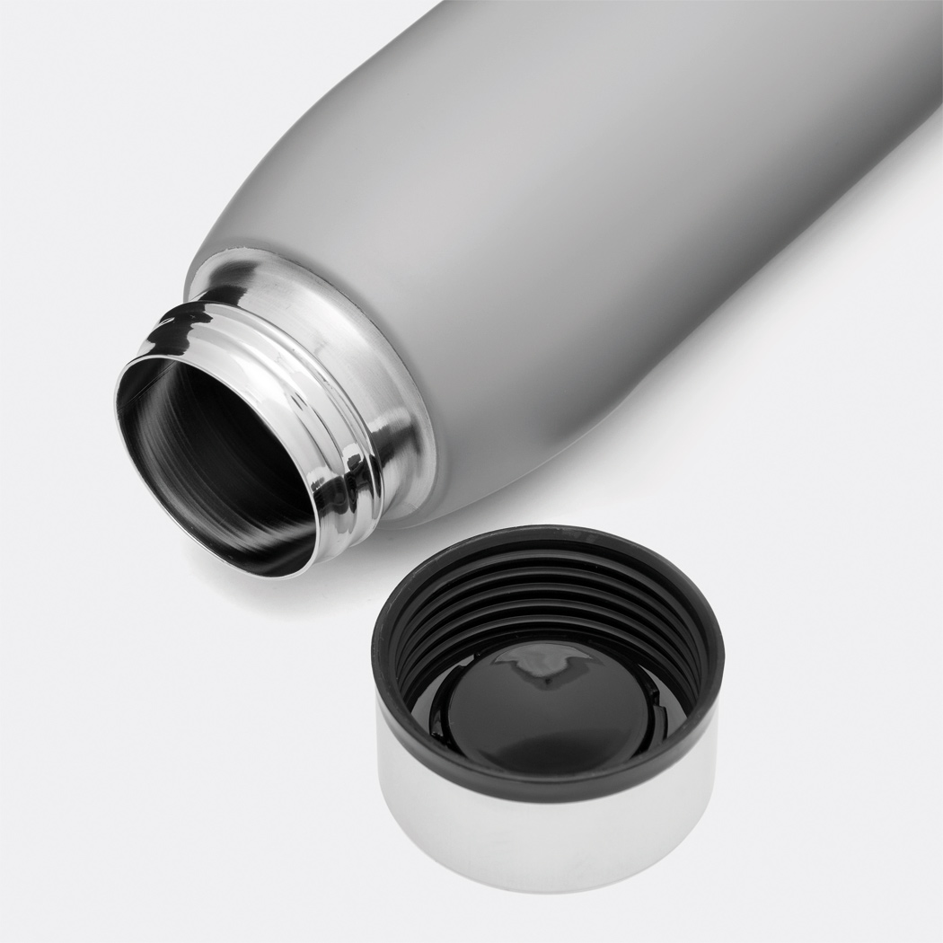 Vakuum-Isolierkanne MUSCULAR, doppelwandig: innen und außen aus Edelstahl, silberner Deckel mit sicherem Schraubverschluss und Silikon-Dichtring, Füllmenge ca. 750 ml hält ca. 8 Stunden warm und bis zu 12 Stunden kalt, in Box