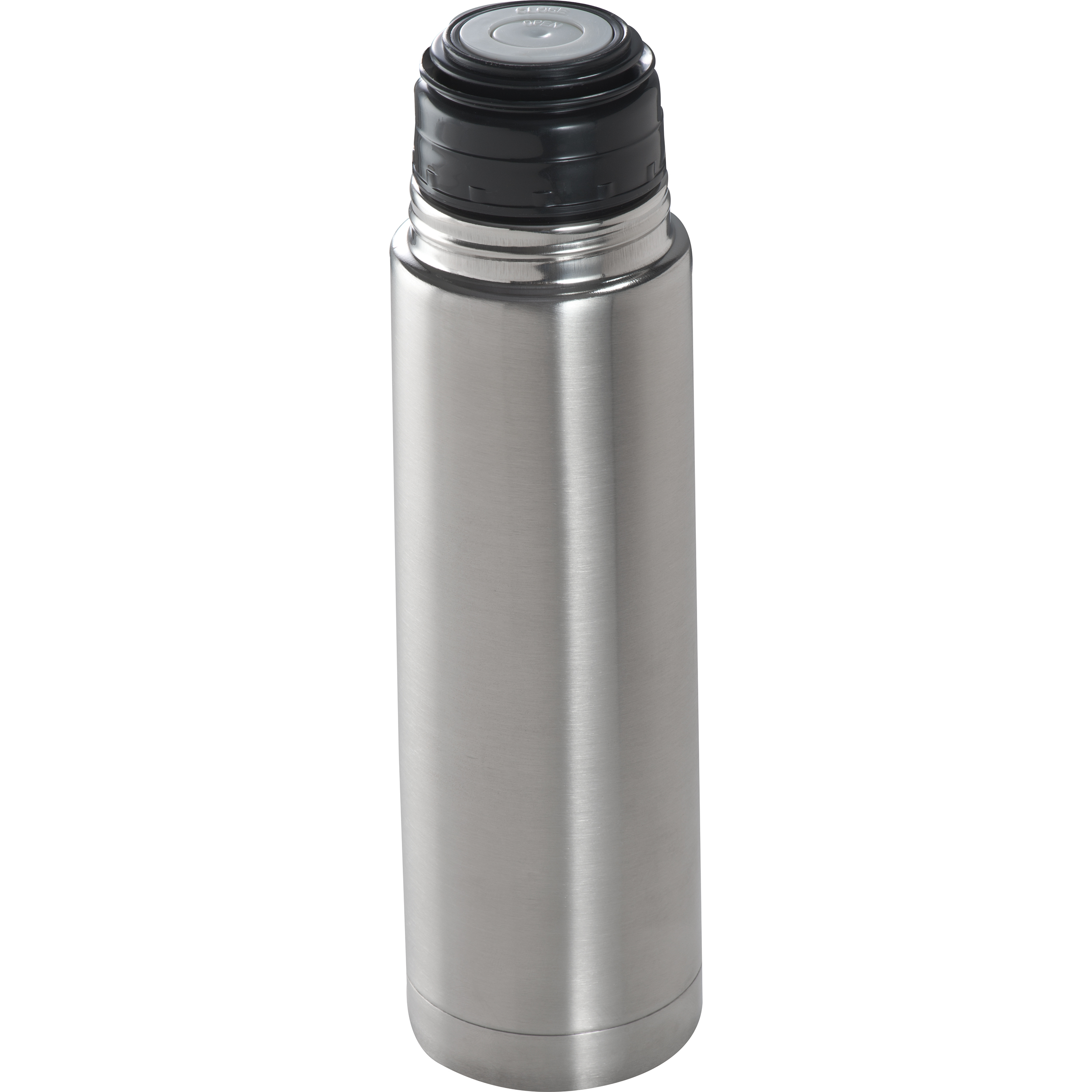 Doppelwandige Vakuum Isolierkanne aus Edelstahl mit 500ml Fassungsvermögen, Schnellverschluss und Metallbecher. Ihre Werbung lasern wir auf die Kanne.