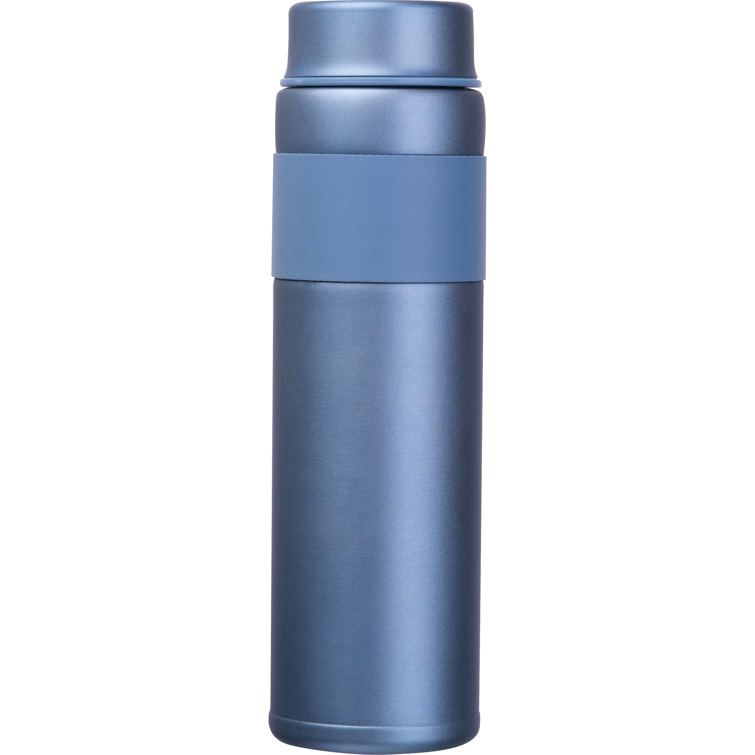 Doppelwandige Vakuum Trinkflasche aus Edelstahl mit 600ml Fassungsvermögen. Liegt durch die farblich abgestimmte Banderole aus PU gut in der Hand. Ihr Logo wird auf de Flasche graviert.