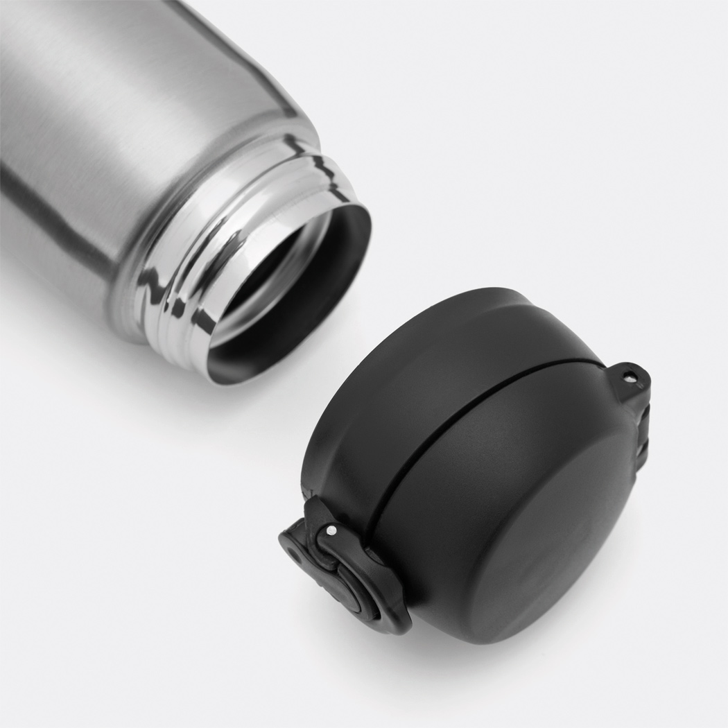 Vakuum-Trinkflasche OOLONG, doppelwandig,: innen und außen aus Edelstahl, Kunststoff-Deckel mit Klappverschluss, Sicherheitsverriegelung, integrierter Trinköffnung, Füllmenge ca. 400 ml, halt ca. 6 Stunden warm und bis zu 12 Stunden kalt, in Box