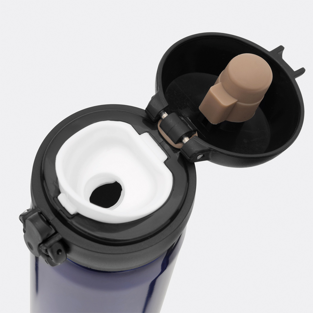 Vakuum-Trinkflasche OOLONG, doppelwandig,: innen und außen aus Edelstahl, Kunststoff-Deckel mit Klappverschluss, Sicherheitsverriegelung, integrierter Trinköffnung, Füllmenge ca. 400 ml, halt ca. 6 Stunden warm und bis zu 12 Stunden kalt, in Box
