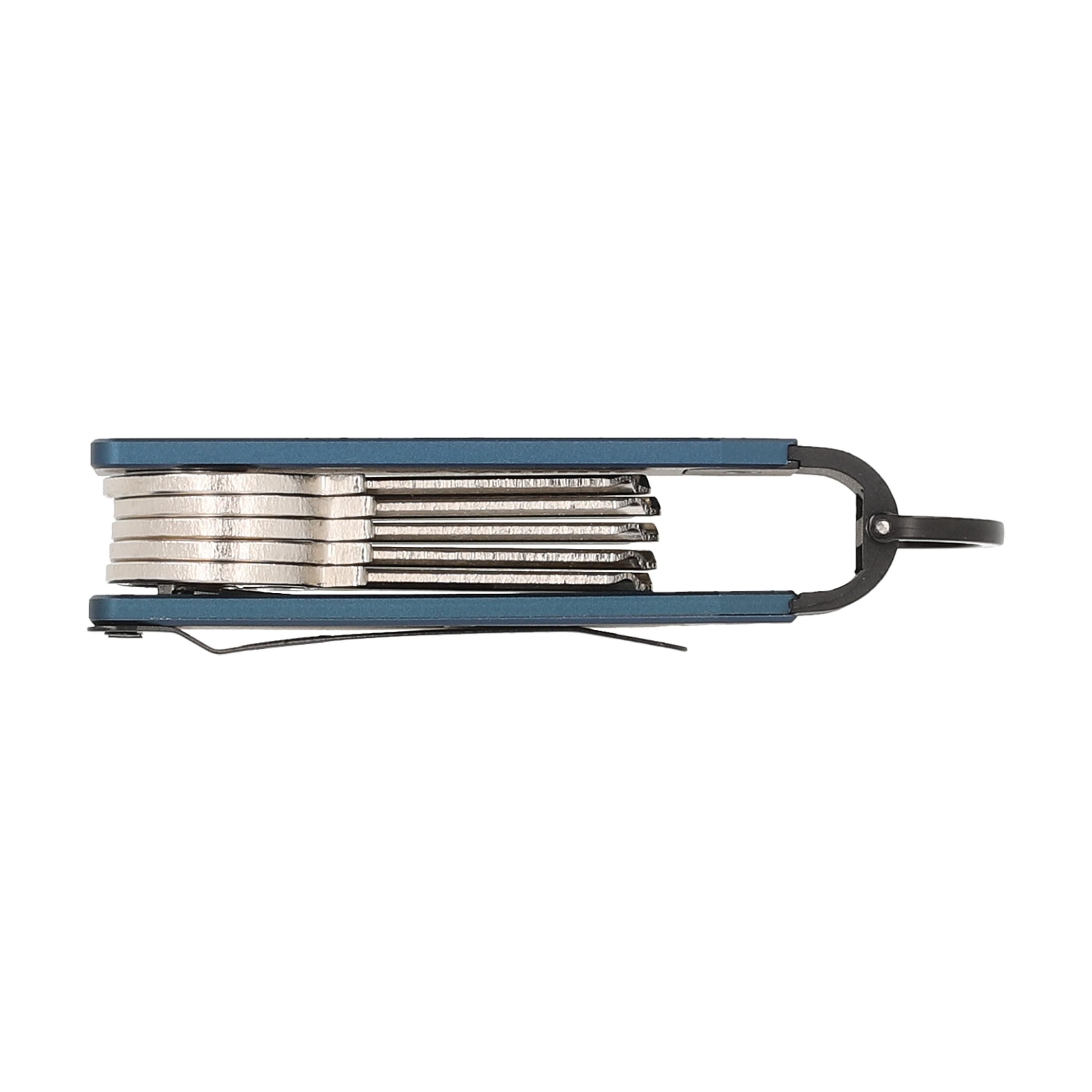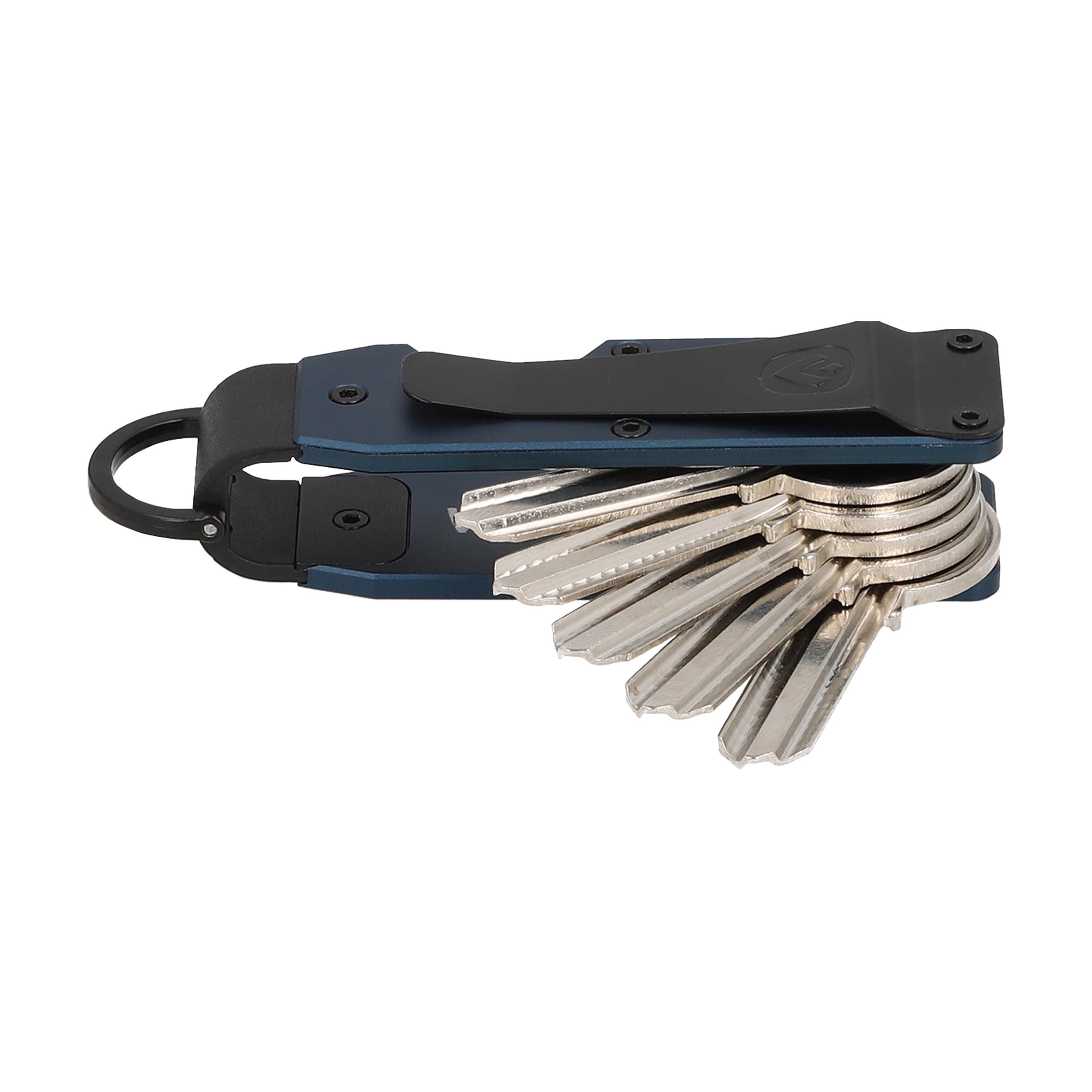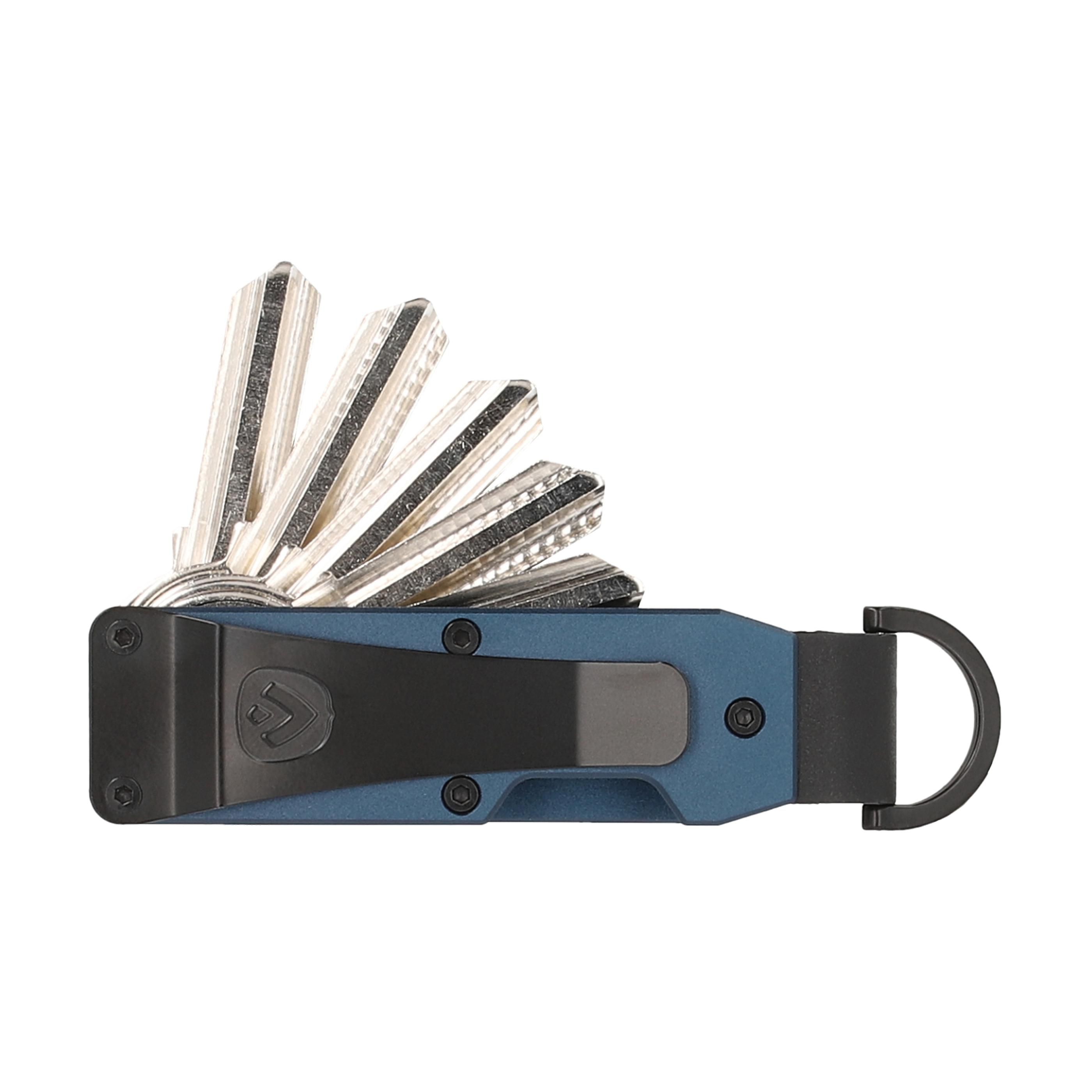 Der Schlüsselhalter Aluminium der Marke Valenta ist eine nachhaltige und kompakte Lösung, um Schlüssel organisiert und geräuschlos aufzubewahren. Dieser aus robustem Aluminium gefertigte Organizer bietet Platz für bis zu 6 Schlüssel und verhindert das Klappern herkömmlicher Schlüsselanhänger. Der D-förmige Schlüsselring erleichtert das Befestigen von Autoschlüsseln oder Fernbedienungen, während der abnehmbare Metallclip einen bequemen Transport ermöglicht oder für ein schlankeres Profil entfernt werden kann. Eine eingebaute Feder hält die Schlüssel sicher an ihrem Platz und die Aussparung an der Vorderseite sorgt für einen einfachen Zugriff. Wird mit Ersatz-Sechskantschlüssel und Schrauben für eine einfache Montage und Einstellung geliefert.