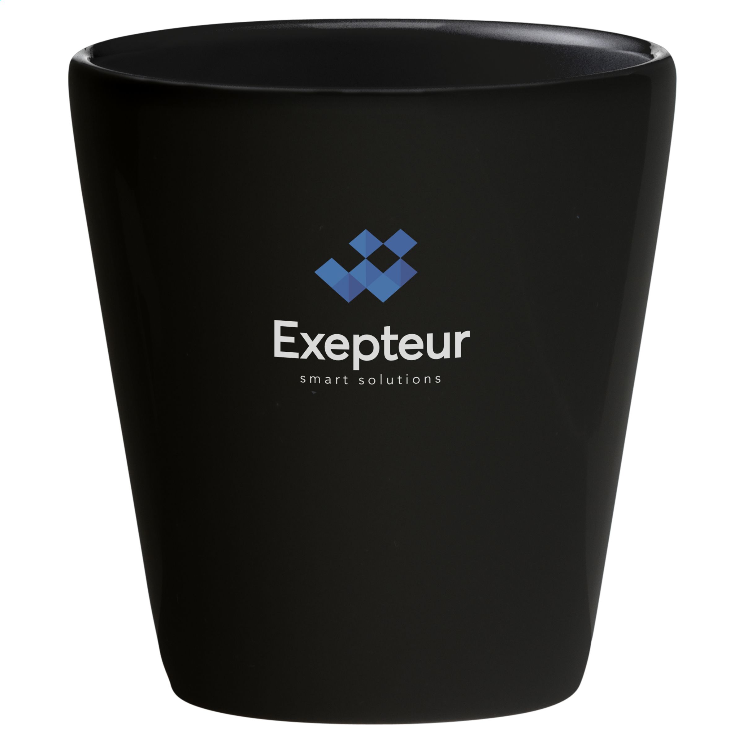 Trendige Tasse ohne Henkel. Aus hochwertiger Keramik. Mit matter, farbiger Außenseite und kontrastierender weißer Hochglanz-Innenseite. Geeignet für alle Kaffeemaschinen. Fassungsvermögen 190 ml. Spülmaschinenfest. Der Druck ist spülmaschinengeprüft und zertifiziert: EN 12875-2.