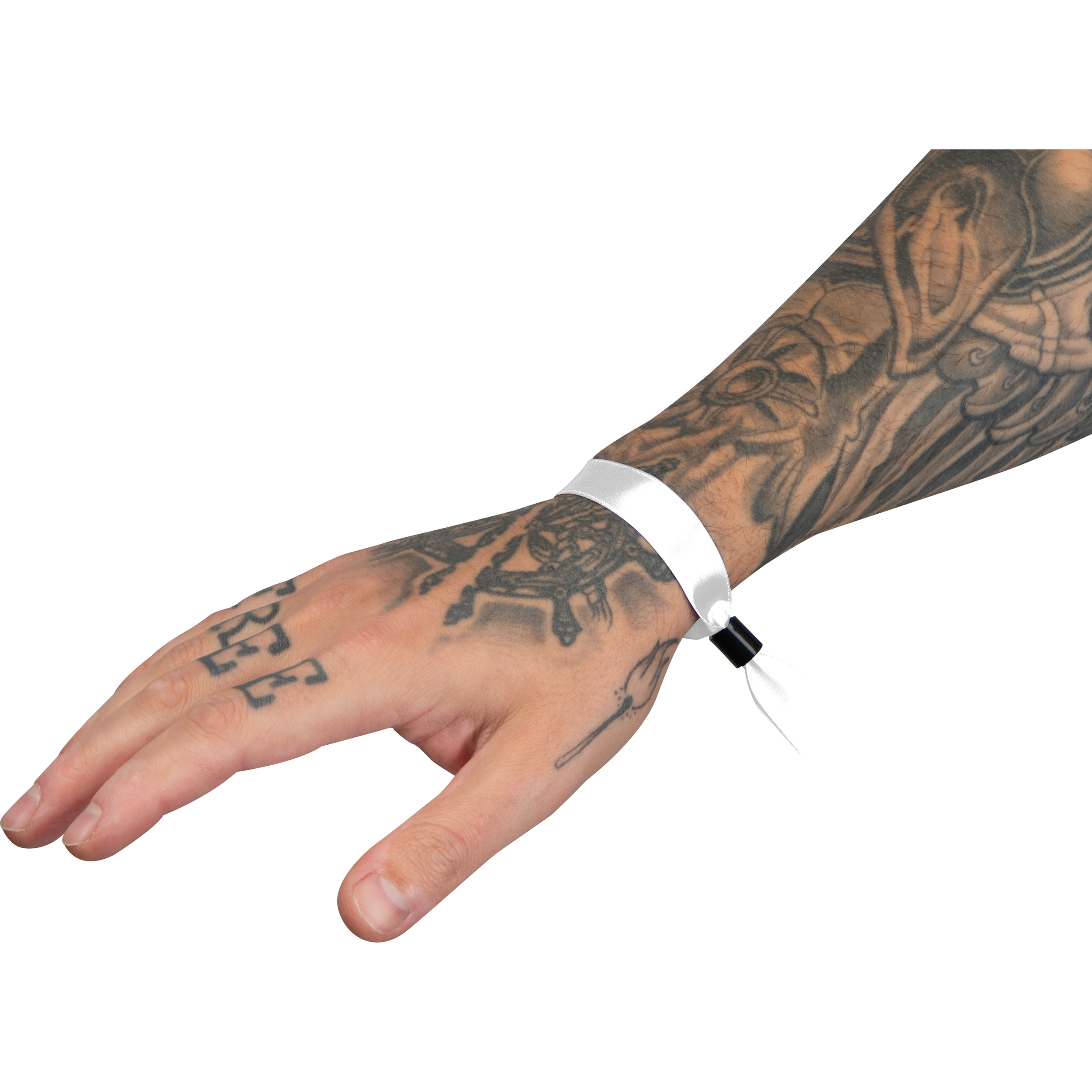 Veranstaltungsarmband aus Polyester mit einem nicht manipulierbaren Sicherheitsverschluß in vielen verschiedenen Farben. Ihre Werbung wird auf das Bändchen gedruckt.