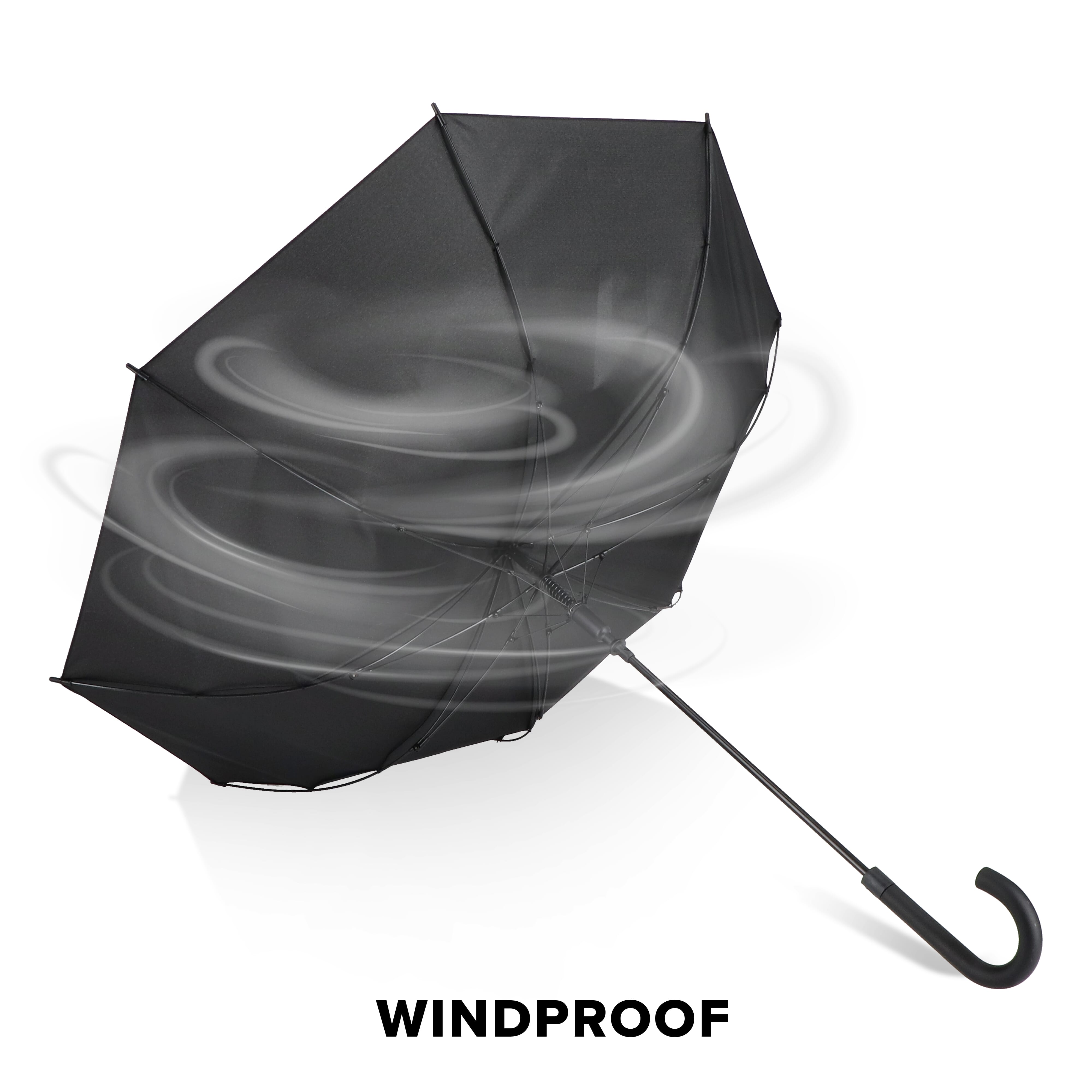 Dieser winddichte 23-Zoll-Stockschirm verfügt über einen PP-Hakengriff und ein robustes zweiteiliges Glasfasergestell, das auch starkem Wind standhält. Er hat eine automatische Öffnungsfunktion für eine schnelle Nutzung und eine 190T Pongee-Kappe, die eine zuverlässige Haltbarkeit und Leistung gewährleistet.