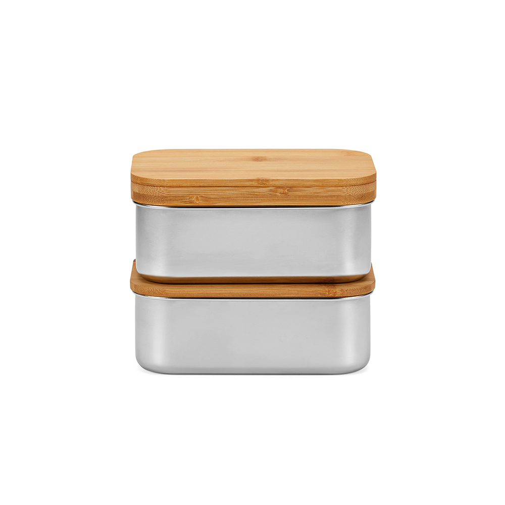 Die Vermeer-Lunchbox hat ein Gesamtvolumen von 1480 ml (980 ml netto). Hergestellt aus recyceltem Edelstahl, verfügen beide Fächer über einen Bambusdeckel. Das Set enthält außerdem ein elastisches Band, das die Fächer zusammenhält, und der Hauptdeckel hält eine Gabel, ein Messer und einen Löffel. Alles wird in einer einzelnen Kraftkartonbox geliefert.