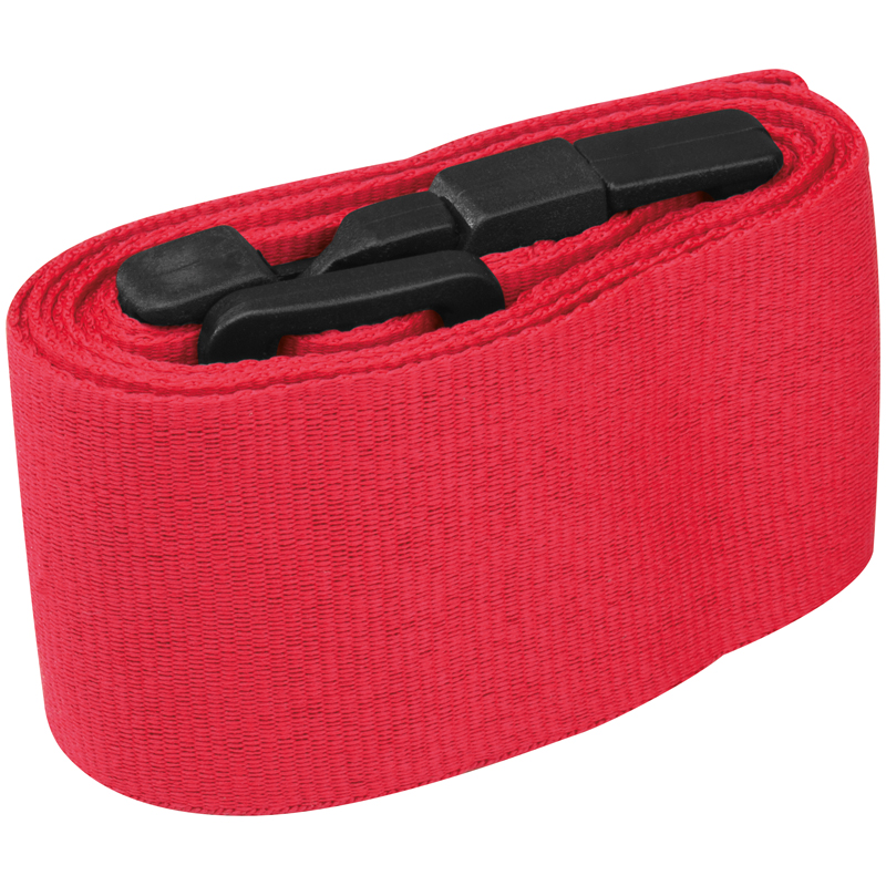 Verstellbares Kofferband aus Polyester mit Verschluss. Ihre Werbung wird auf das Band (Logo wird wiederholt) gedruckt. Nur 1C Druck möglich.
