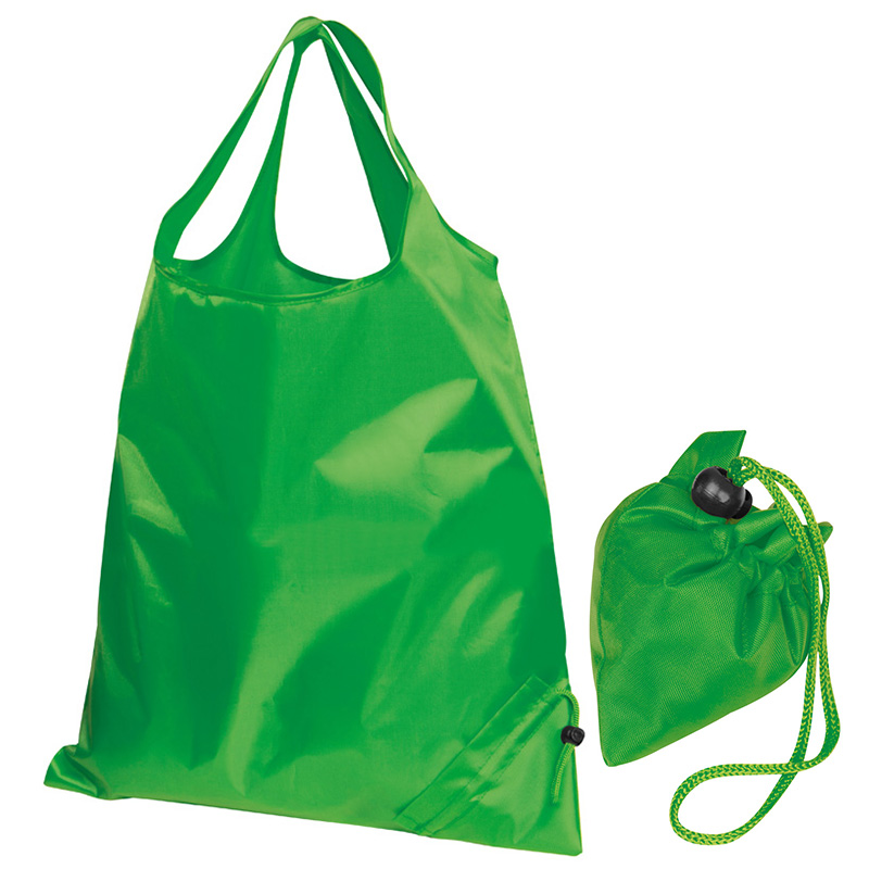 Faltbare Einkaufstasche aus robustem 210D Polyester mit Tragehenkeln. Der Werbeaufdruck erfolgt direkt auf die Tasche. Für 2C oder mehr, Preise auf Anfrage.