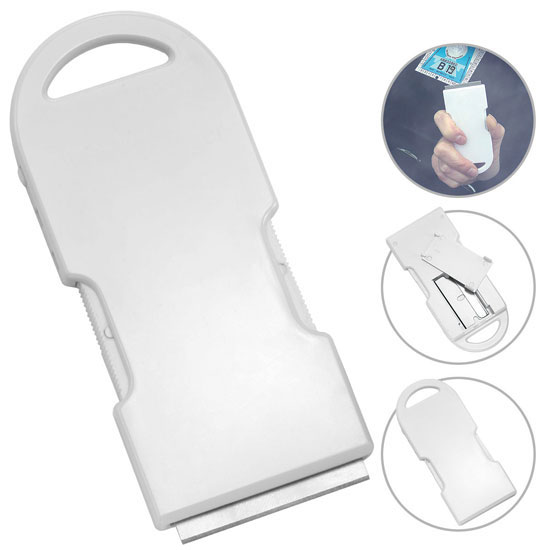 Vignetten-Schaber mit ausfahrbarer Klinge, inkl. Reserveklinge.