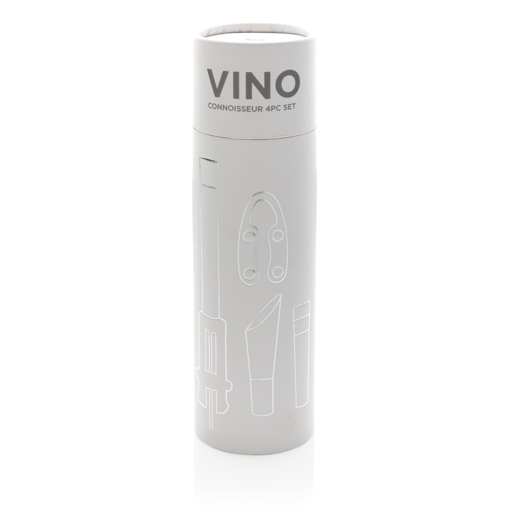 Mit dem Vino Connoisseur Set haben Sie alles was Sie zum Öffnen, Servieren und Lagern Ihres Lieblingsweins brauchen. Der Öffner, der Folienschneider, der Stopfen mit Vakuumpumpe sowie der Ausgießer mit Belüfter sind in einer schicken Box verpackt
