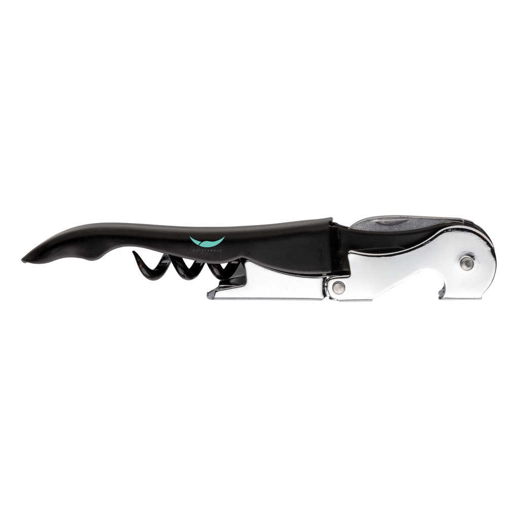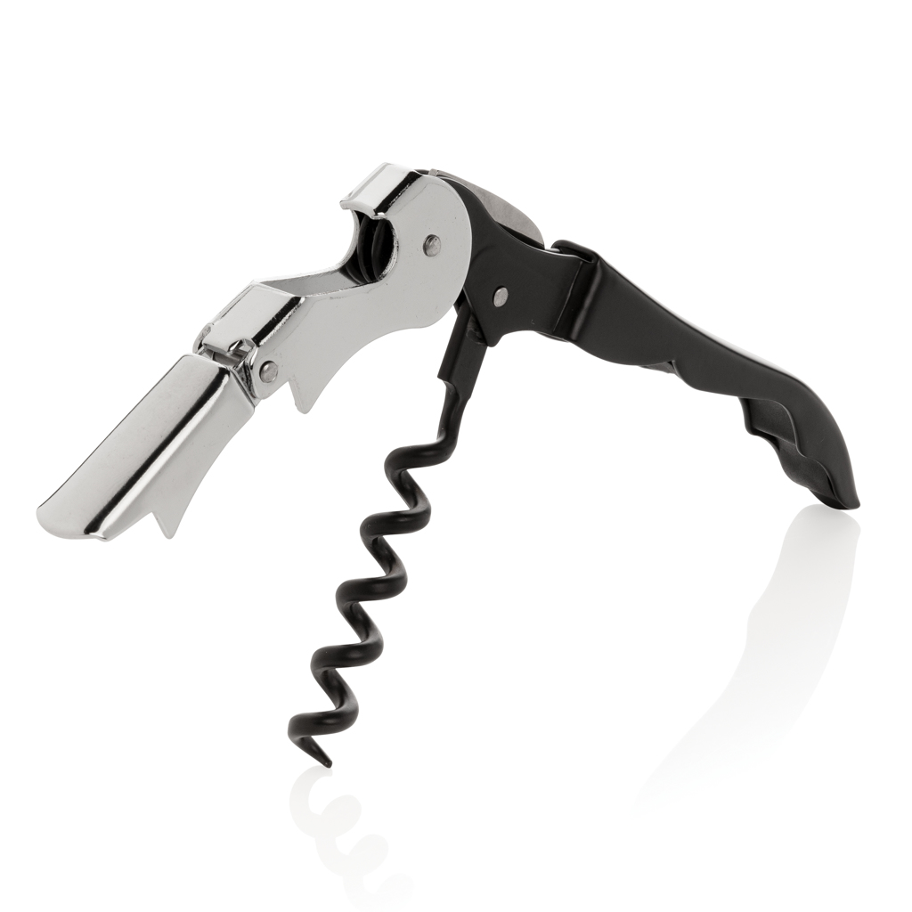 Dieses Kellnermesser im klassischen Korkenzieher-Design mit 2 Hebestufen hat ebenso einen Folienschneider und einen Kapselheber. In Geschenkbox verpackt.