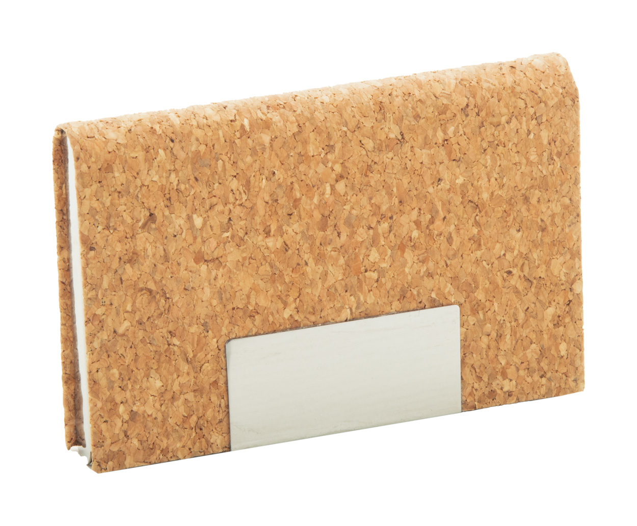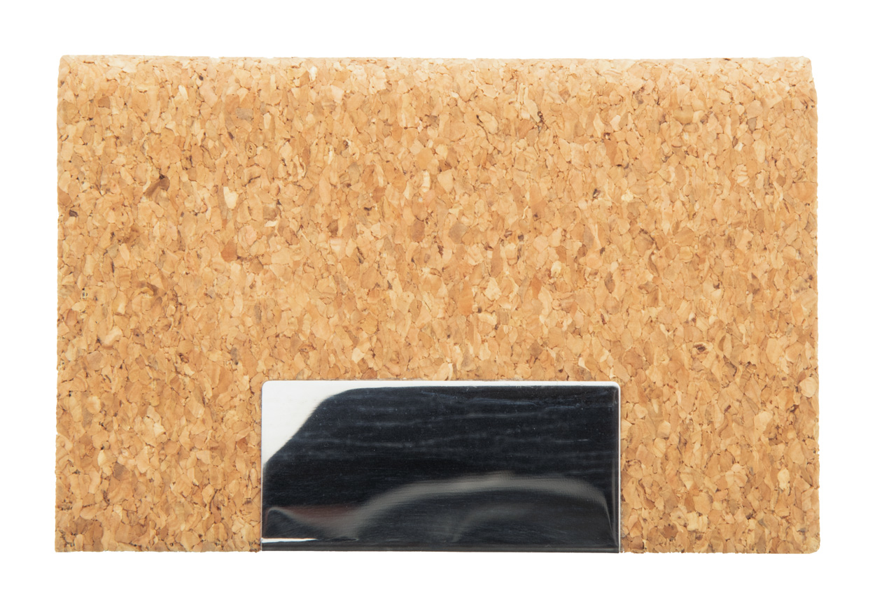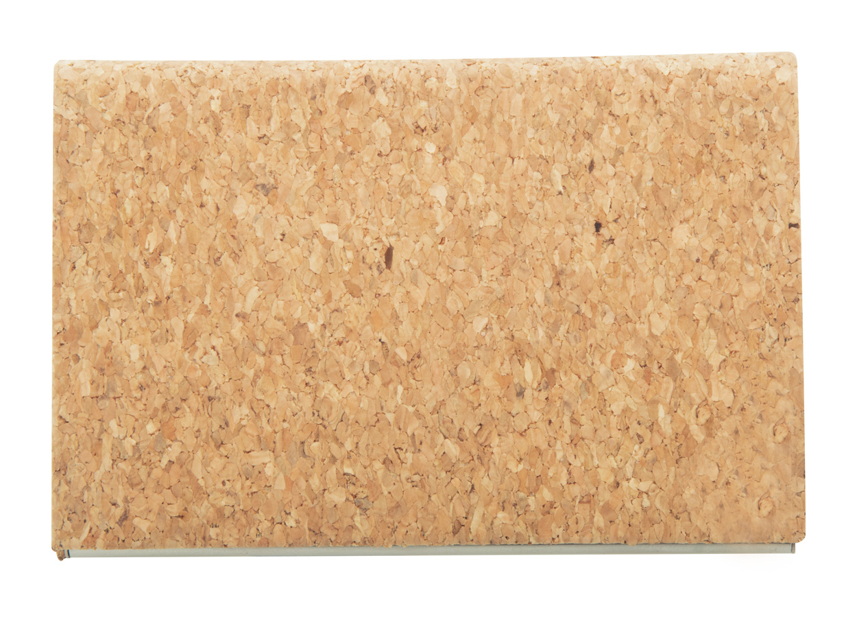 Visitenkarten-Etui aus Metall mit Naturkork-Ummantelung.