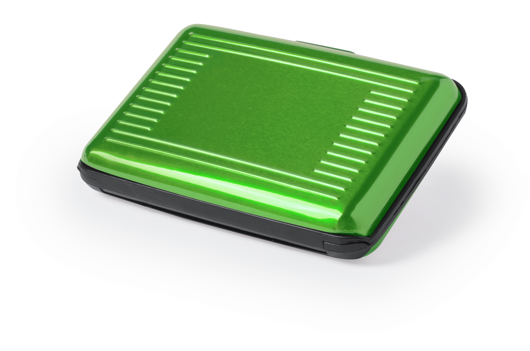 Kartenhalter mit RFID-Sicherheitstechnologie (Radio Frequency Identification), durch die die Kartendaten stets geschützt sind. Robustes Design aus Aluminium mit 6 Fächern im Akkordeon-Stil und einer glatten Außenseite, die speziell für den Laserdruck entwickelt wurde.