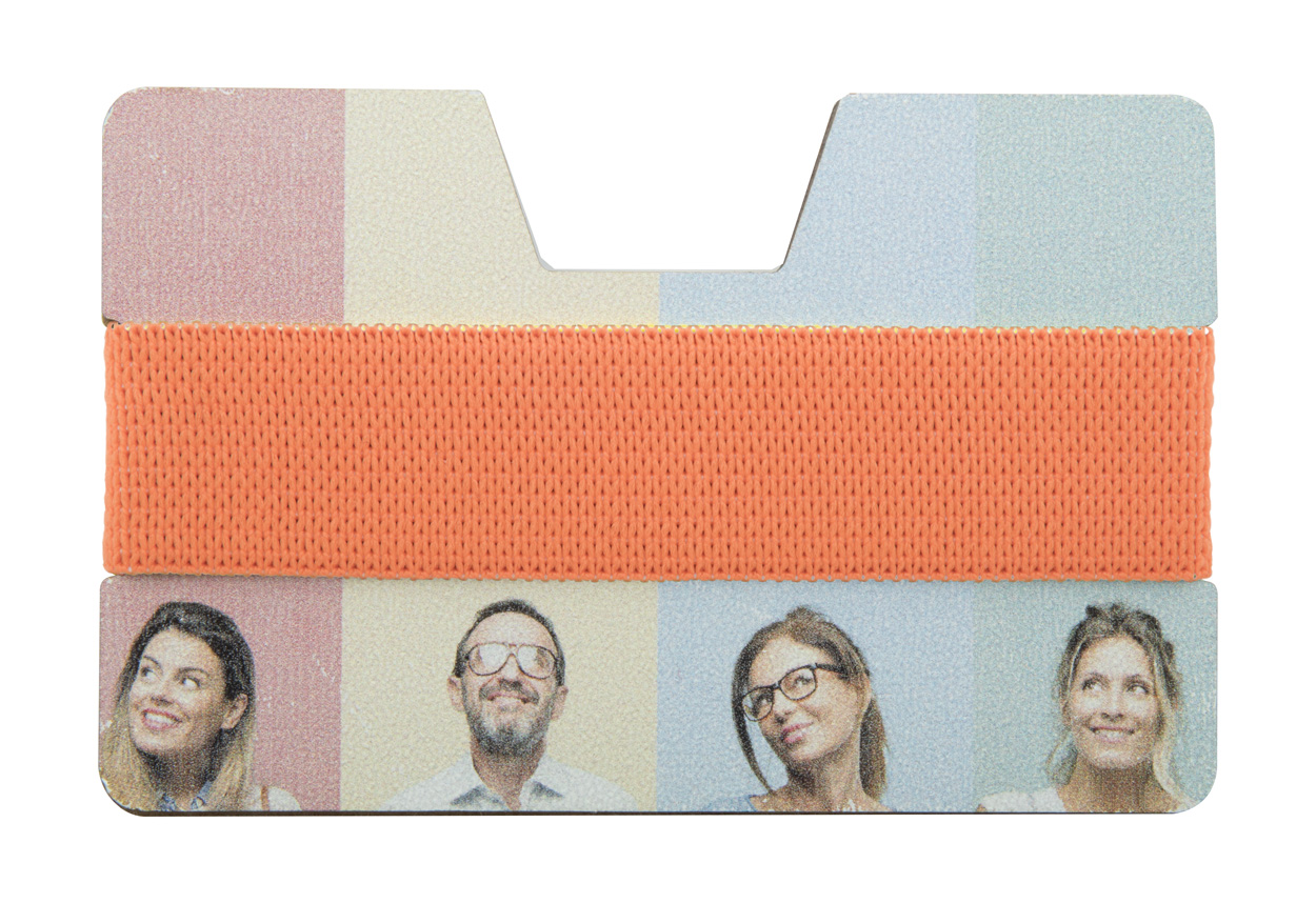 Kreditkarten-Etui aus MDF Holz mit elastischem Gummiband. Ideal für UV Digitaldruck.