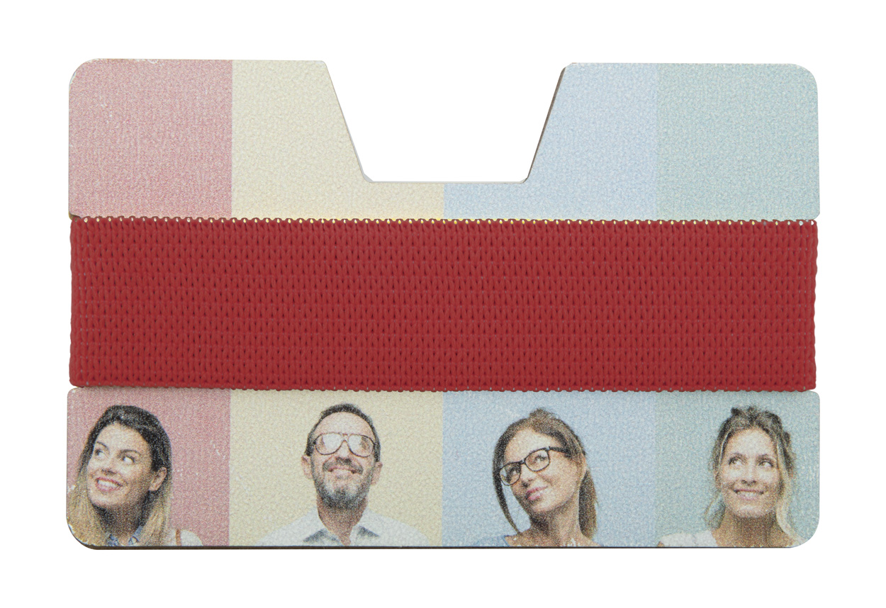 Kreditkarten-Etui aus MDF Holz mit elastischem Gummiband. Ideal für UV Digitaldruck.