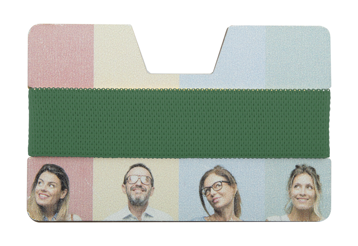 Kreditkarten-Etui aus MDF Holz mit elastischem Gummiband. Ideal für UV Digitaldruck.