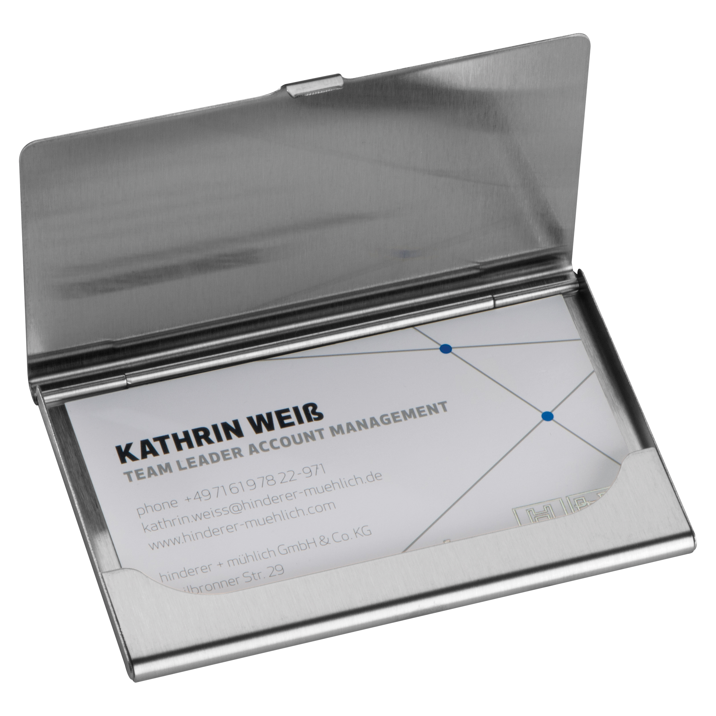 Wenn Sie weitere Informationen zu dem Werbemittel Visitenkartenetui aus Metall benötigen, können Sie sich gerne mit unseren Experten unter