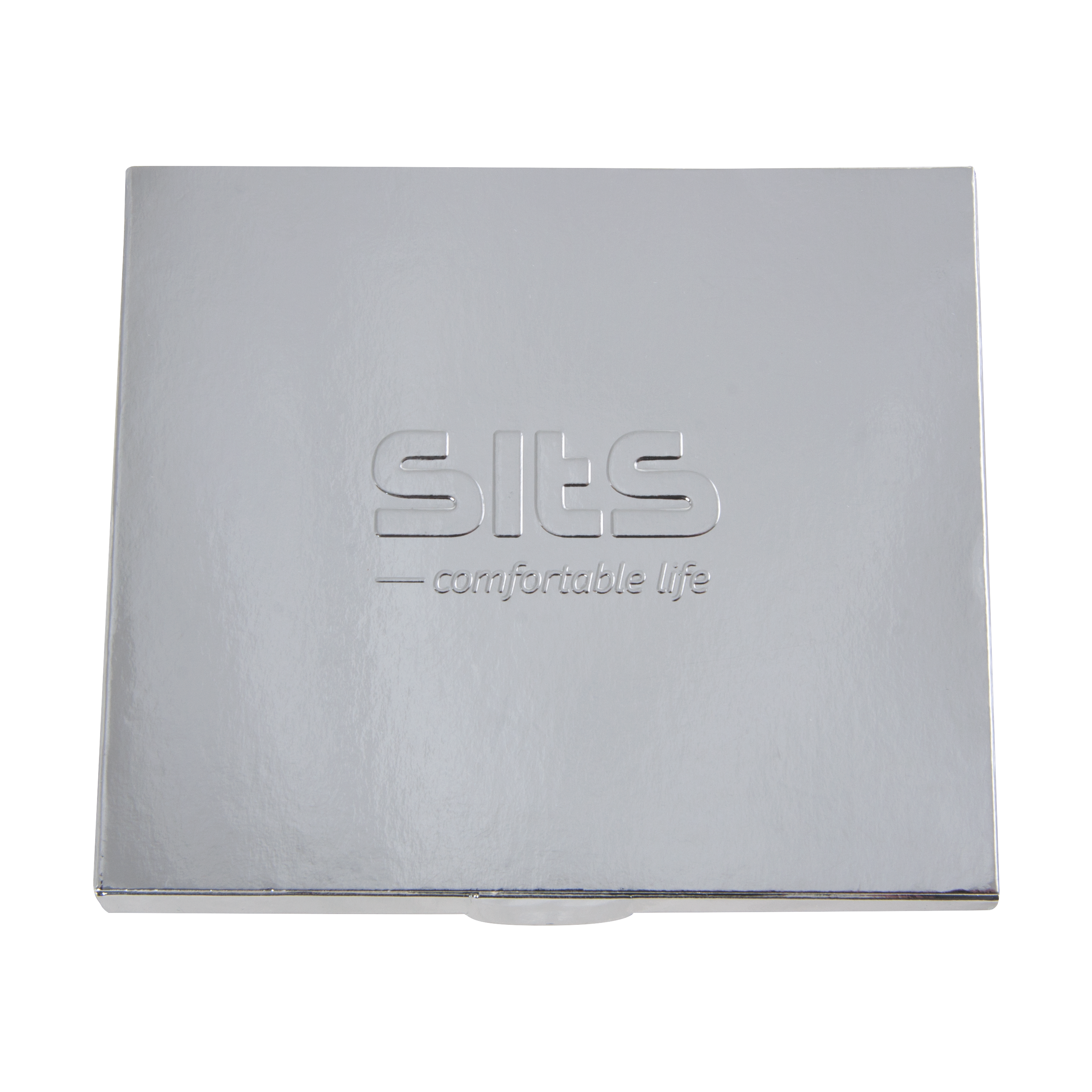 Informationen zu "Visitenkartenumschlag silberfarben mit 4 Napolitains, Umschlag mit Prägung Napolitains 4-c-bedruckt"