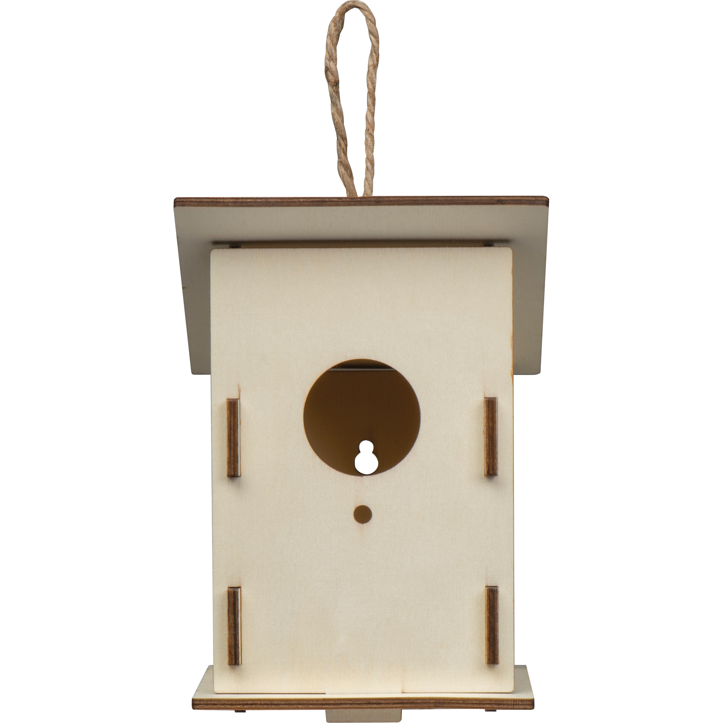 Vogelhäuschen aus Holz zum Zusammenbauen. Viele Vogelarten werden sich für Ihre Unterstützung bedanken. Ihre Werbung bringen wir mittels einer Lasergravur auf der Vorderseite an.