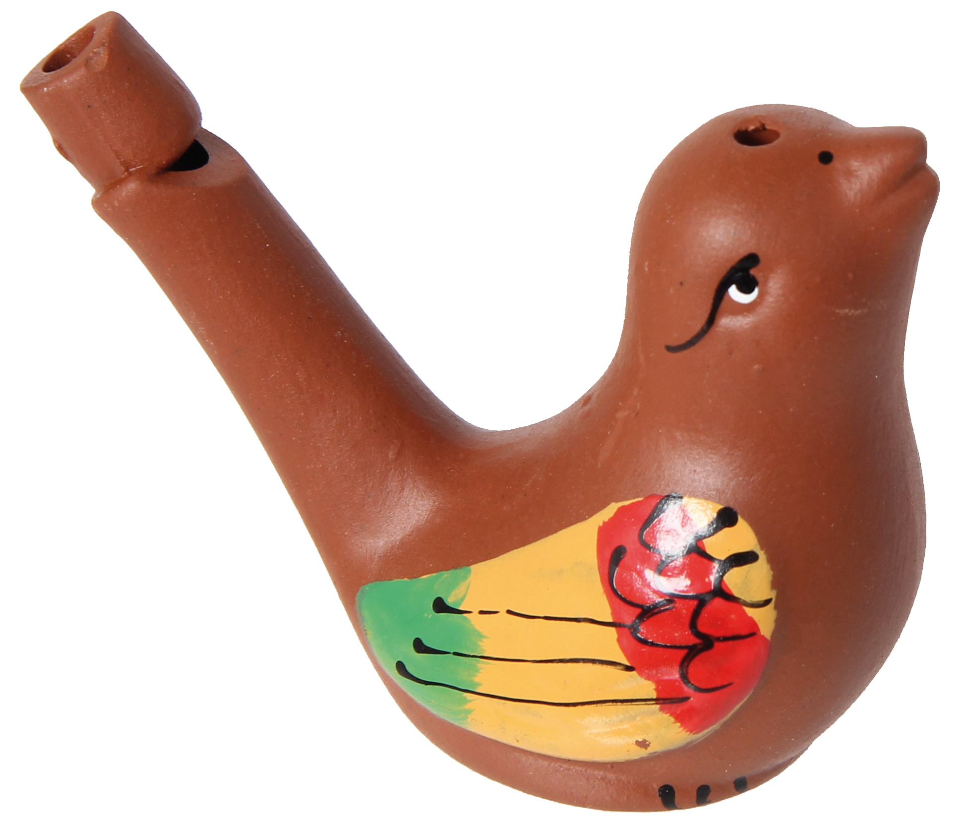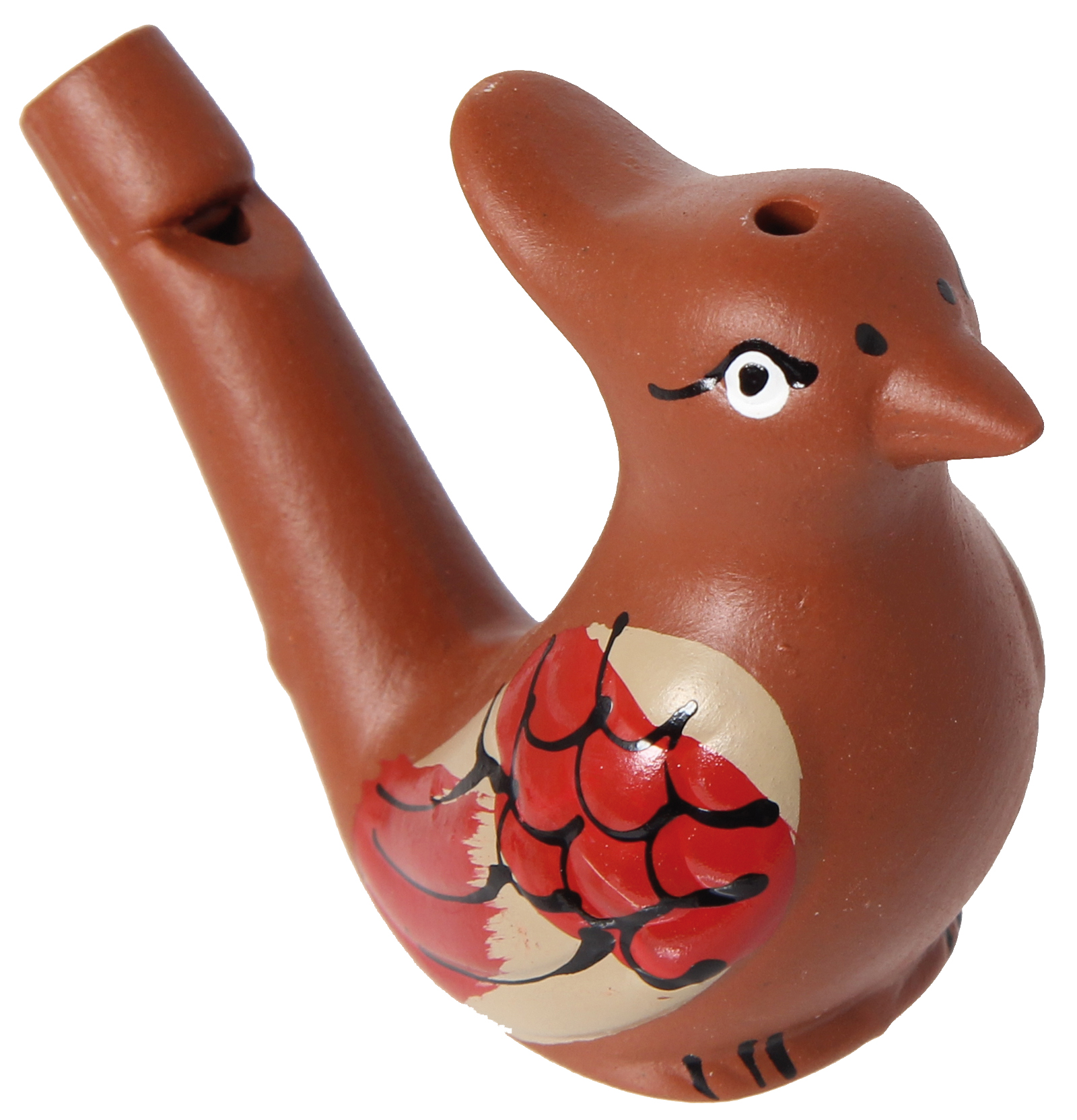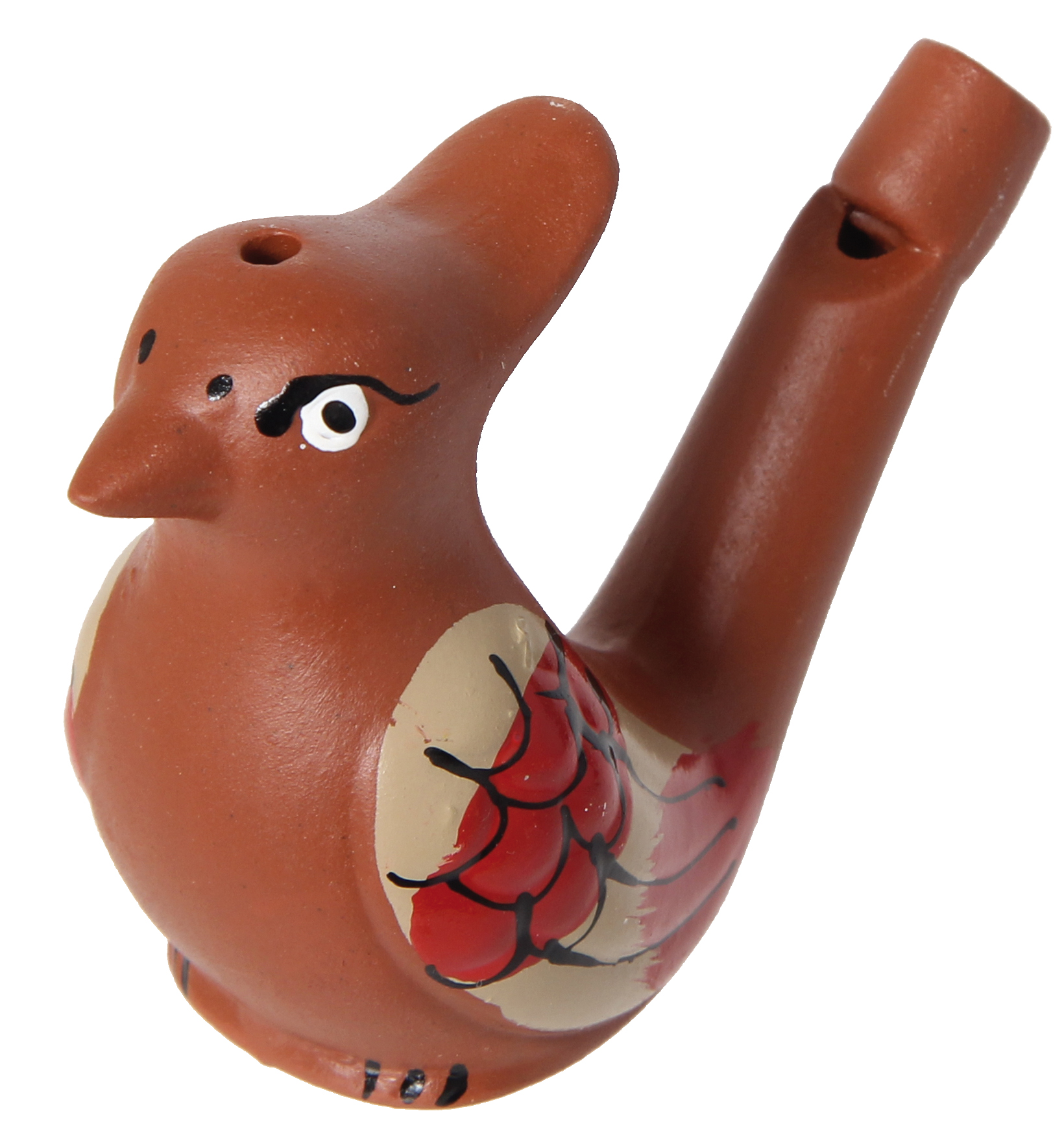 Originelle Pfeife, zwei Vogeldesigns sortiert und handbemalt, so wird jedes zum Unikat. Mit Wasser gefüllt zwitschert die Vogelpfeife, wenn man hineinbläst. Die Füllmenge bestimmt den Ton.