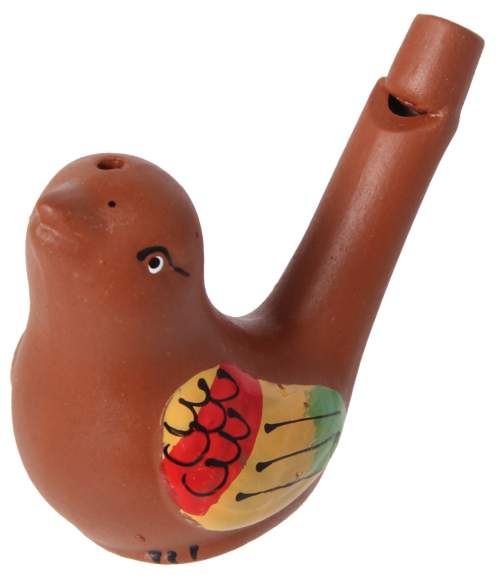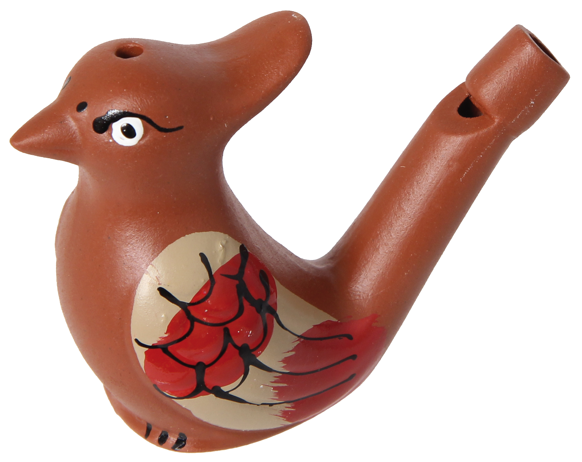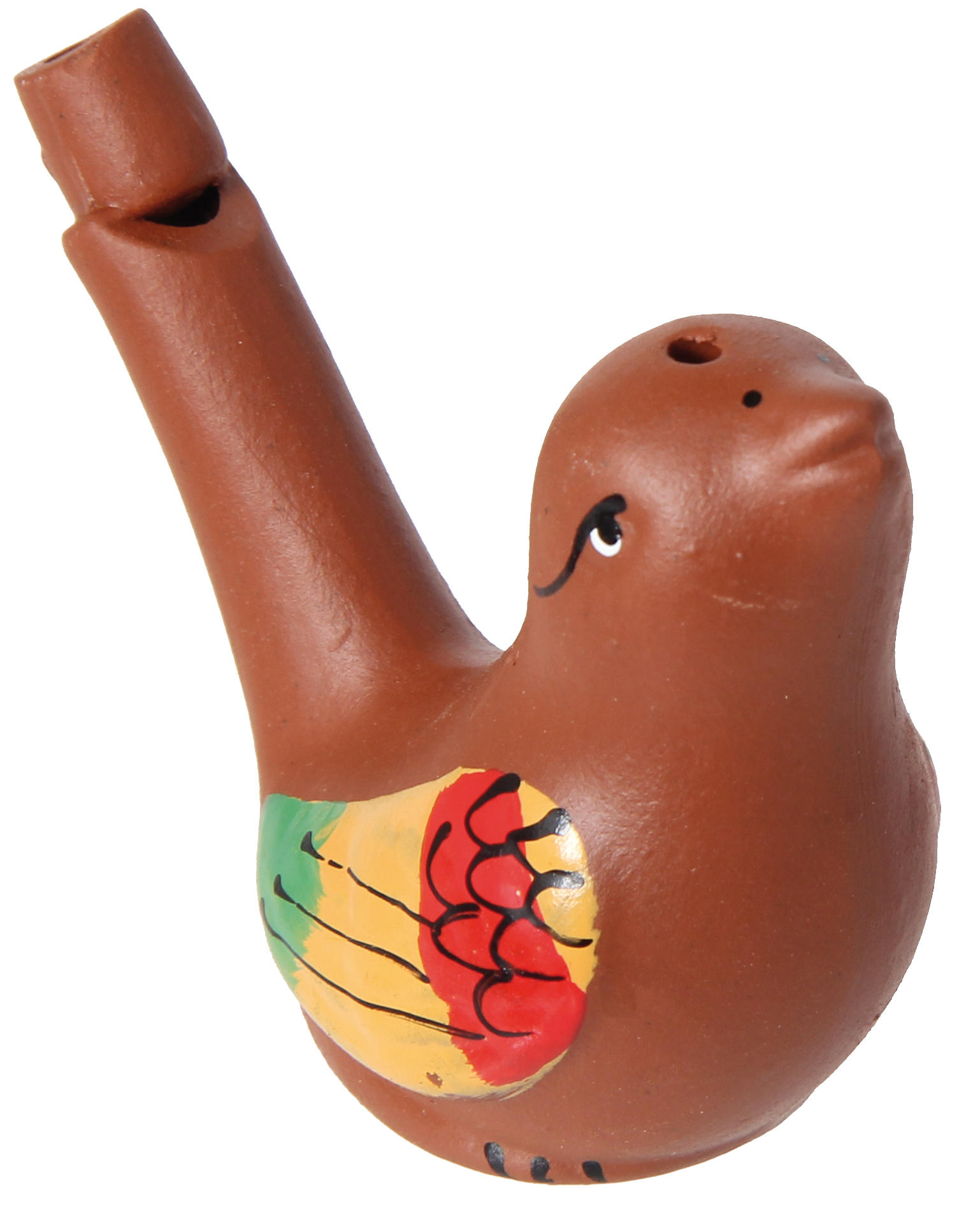 Originelle Pfeife, zwei Vogeldesigns sortiert und handbemalt, so wird jedes zum Unikat. Mit Wasser gefüllt zwitschert die Vogelpfeife, wenn man hineinbläst. Die Füllmenge bestimmt den Ton.