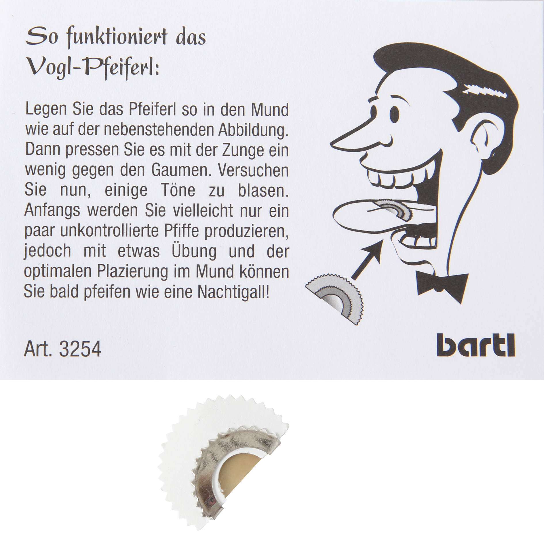 Mit dem kleinen Plättchen zwischen Zunge und Gaumen zwitschert man wie ein Vogel.