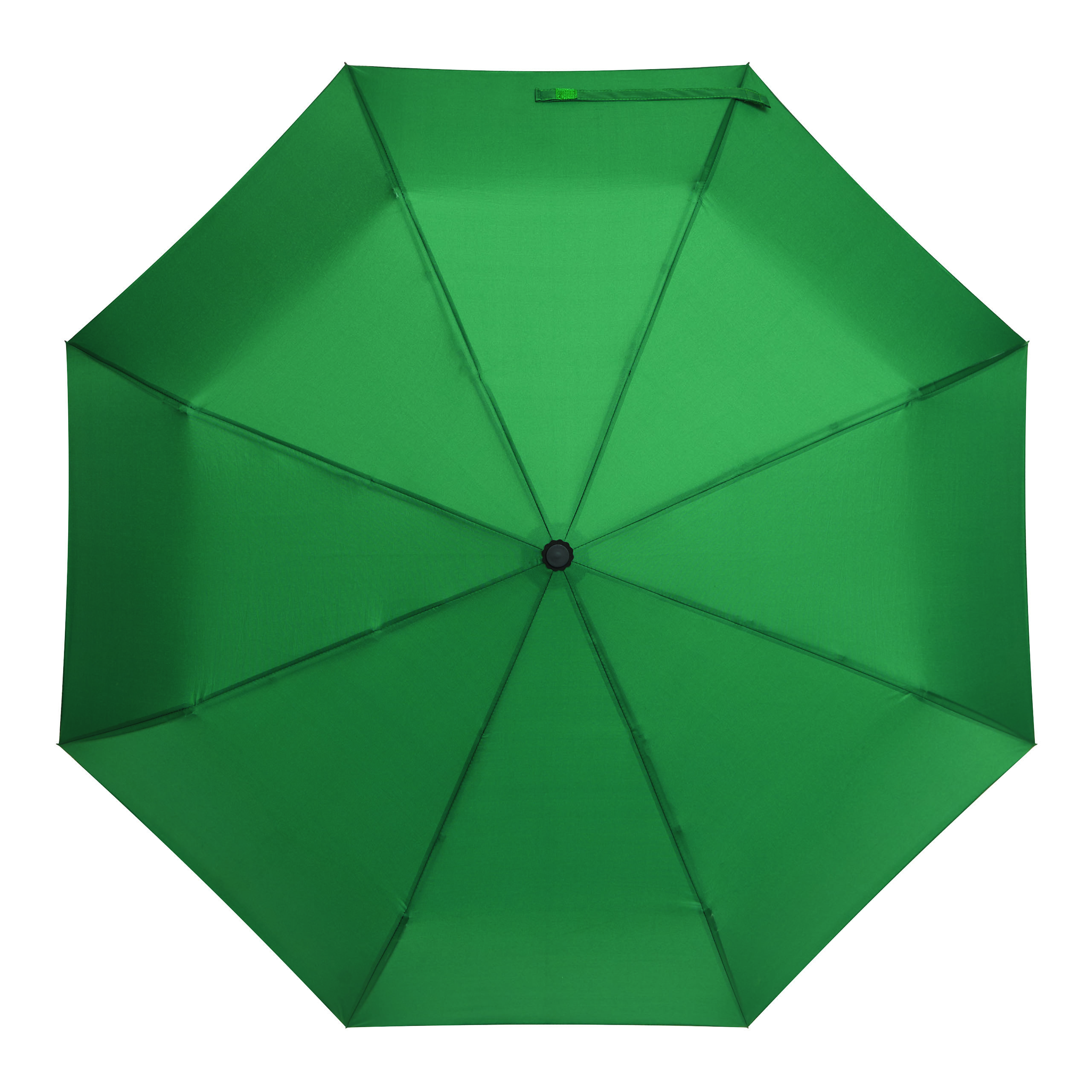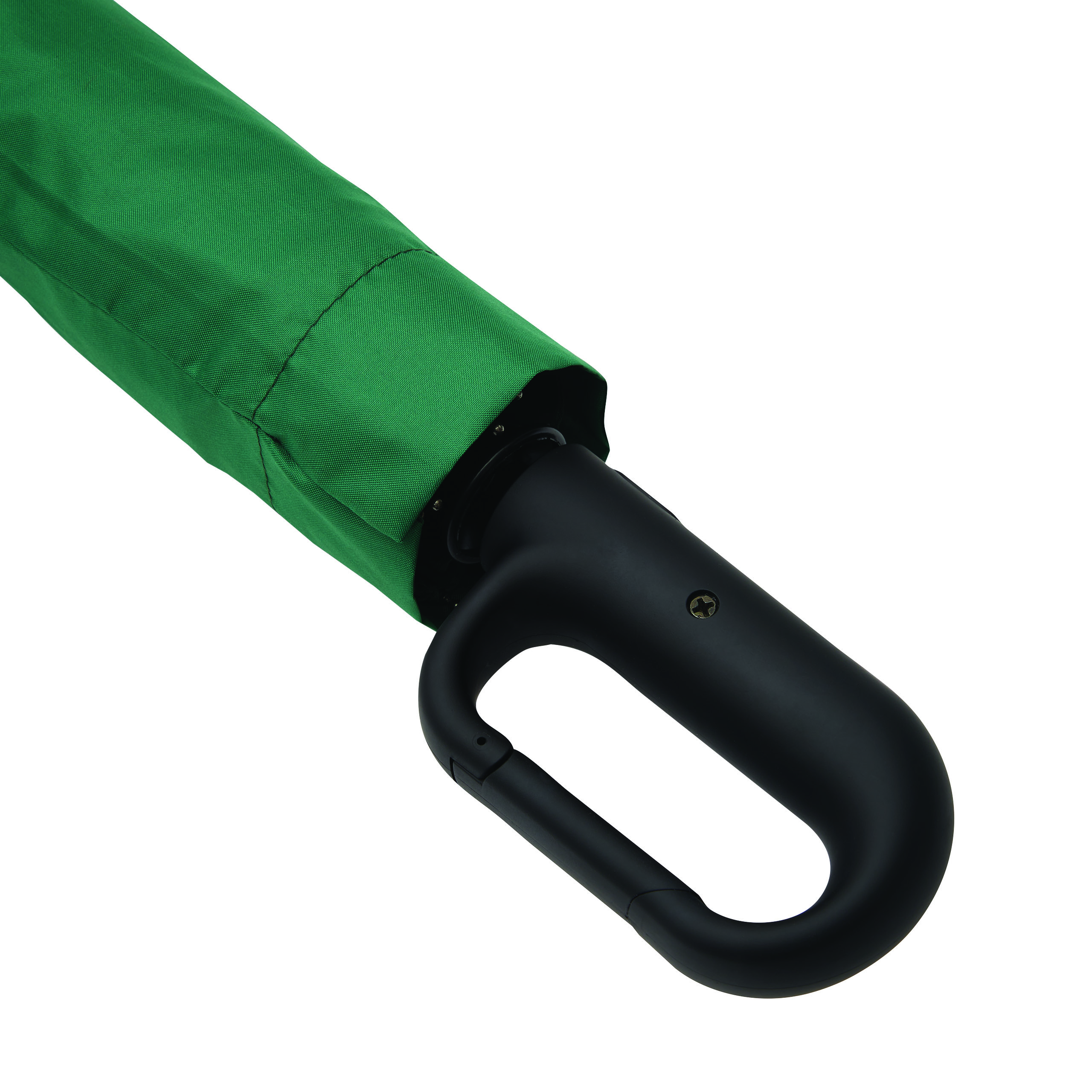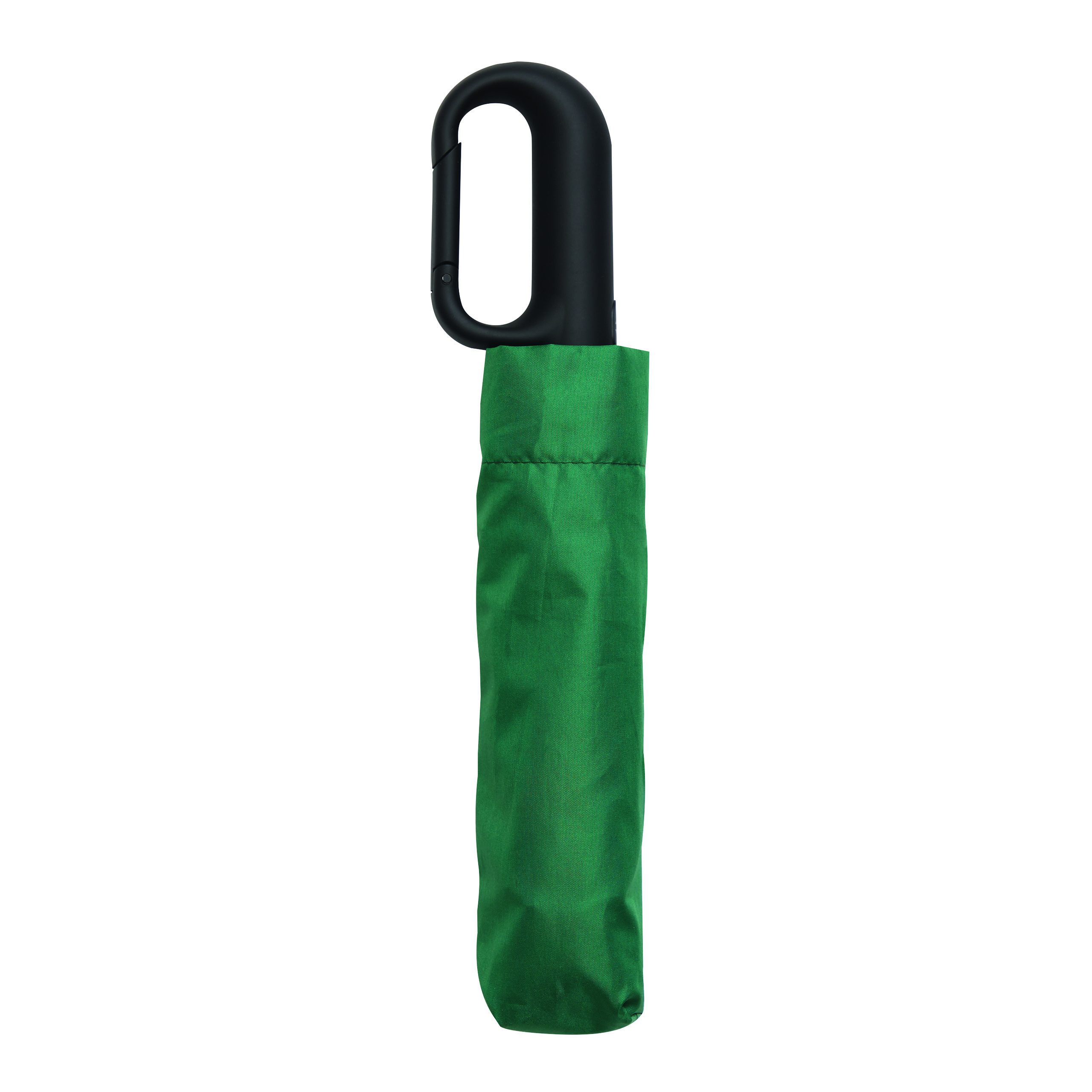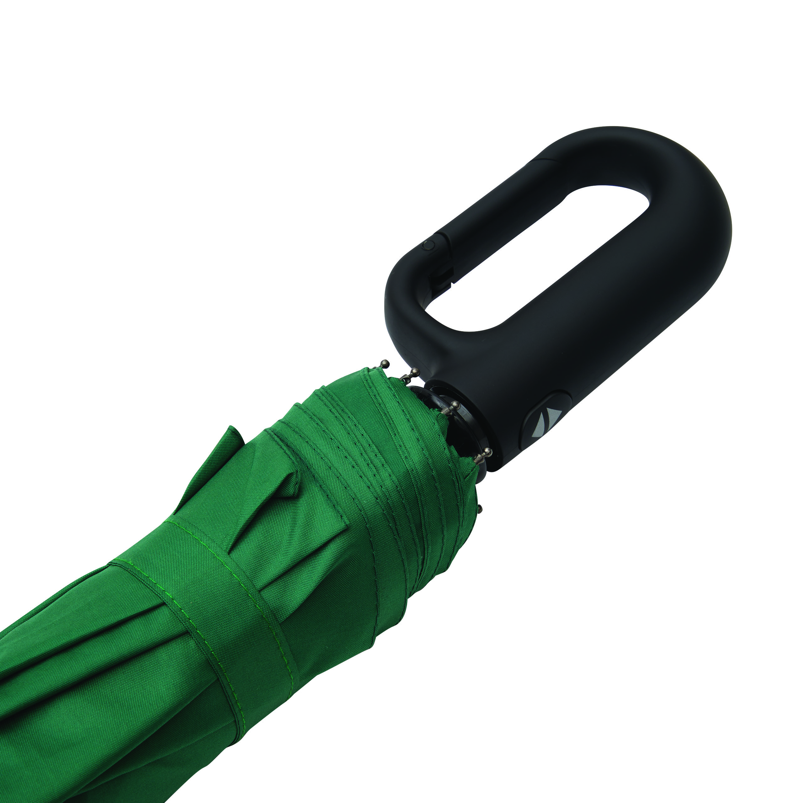 Vollautomatischer Windproof-Taschenschirm SCIROCCO in farblich abgestimmtem Futteral: 3-teiliger Metallstock, mit Metall-Fiberglasspeichen und Metalltips, schwarzer gummierter Karabiner-Kunststoffgriff, Polyester-Pongee-Bespannung aus recycelten Kunststoffen / RPET, Schließband mit Klettverschluss