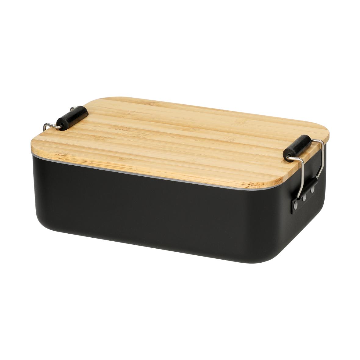 Plastikfreie Brotzeitbox für Ihre Promotion. Die Dose besteht aus Aluminium, der Deckel ist aus Bambusholz und verfügt über einen Silikonring und Klemmbügel für ein sicheres Verschließen. Der Deckel ist komplett abnehmbar und kann bei Bedarf auch als Schneidbrett verwendet werden.